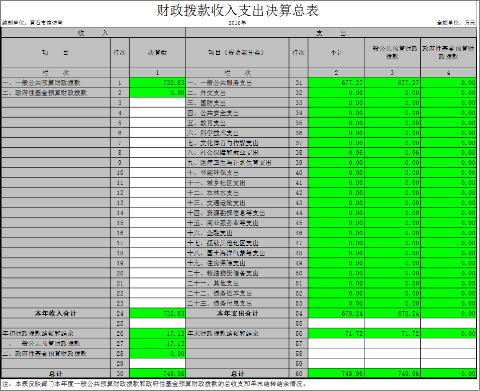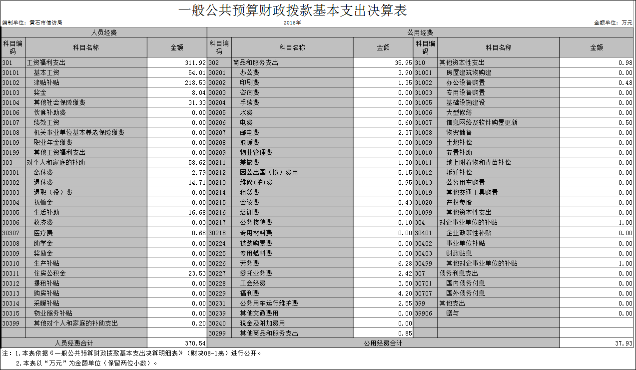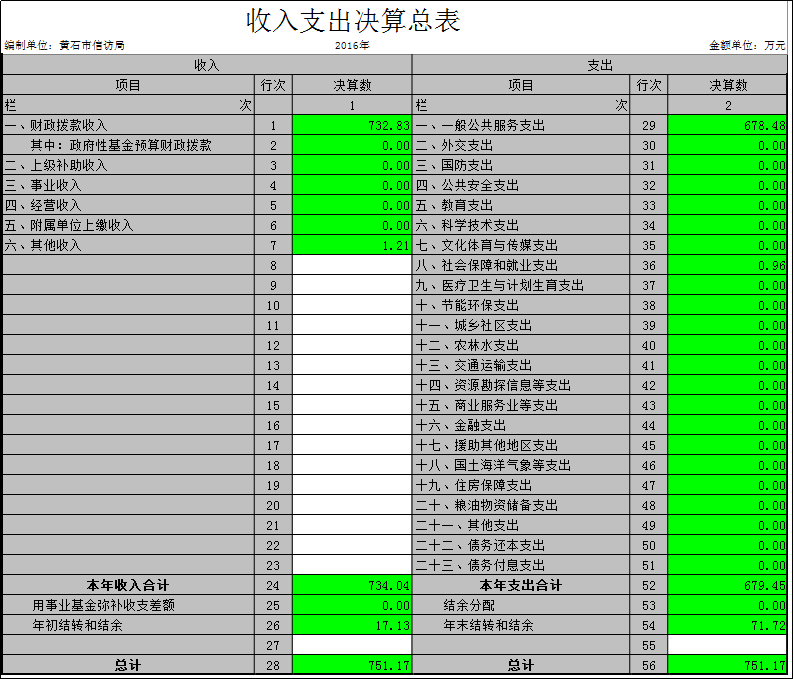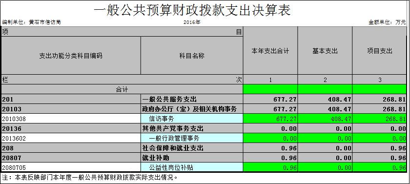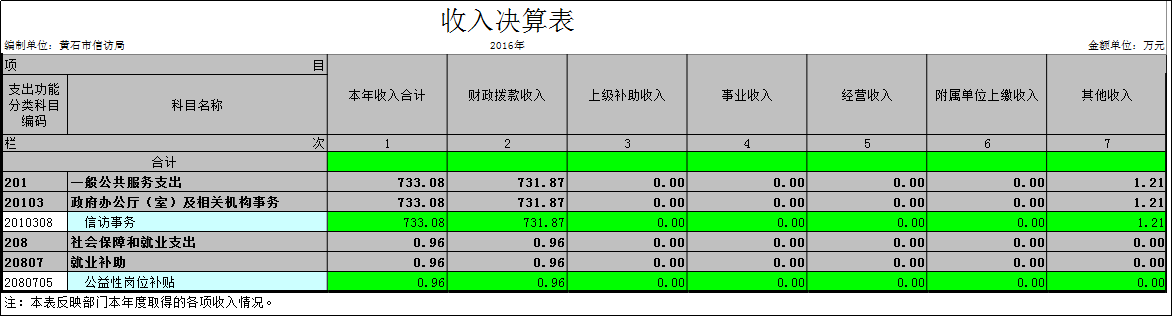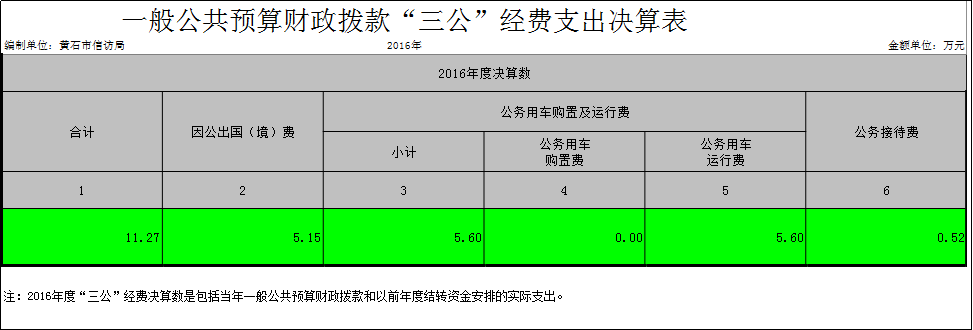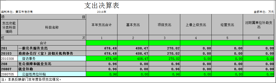 黃石市信訪局2016年決算分析