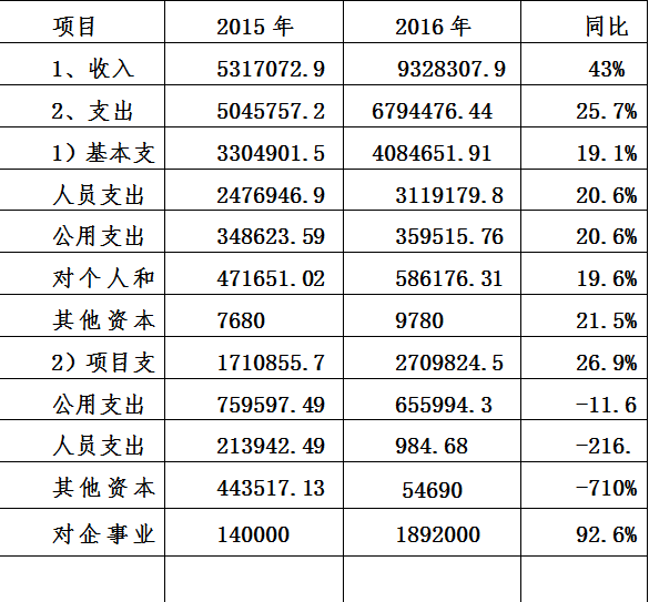 2015年與2016年收入支出對(duì)比表