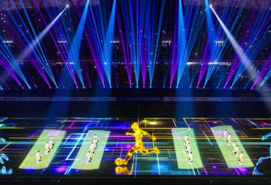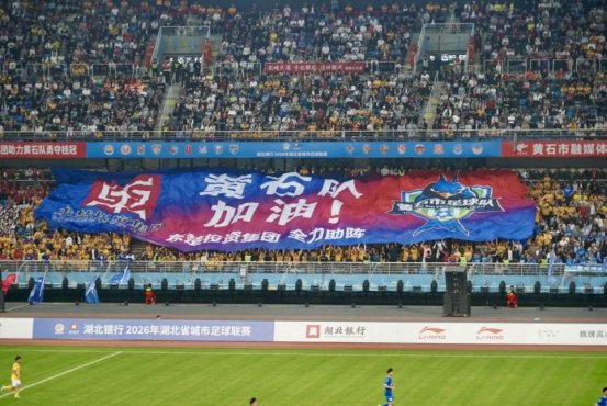 4月12日晚,大冶湖畔,黃石奧體中心通體流光,如一座明亮的島嶼泊于夜色??磁_之上,27354名球迷點(diǎn)亮手機(jī),燦若星河。這場覆蓋湖北17市州的全民足球盛宴,以一場兼具靜美與動感的視聽盛宴,鐫刻下荊楚足球的嶄新印記。