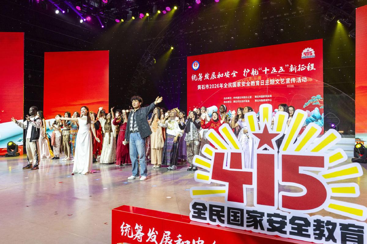 15日,黃石市2026年全民國家安全教育日主題文藝宣傳活動在市融媒體中心演播廳舉行。活動以“統籌發展和安全 護航‘十五五’新征程”為主題,通過歌舞、小品、朗誦、戲曲、快板等文藝形式,普及國家安全知識,宣傳總體國家安全觀,營造全民共筑國家安全防線的濃厚氛圍。(何戈 攝)