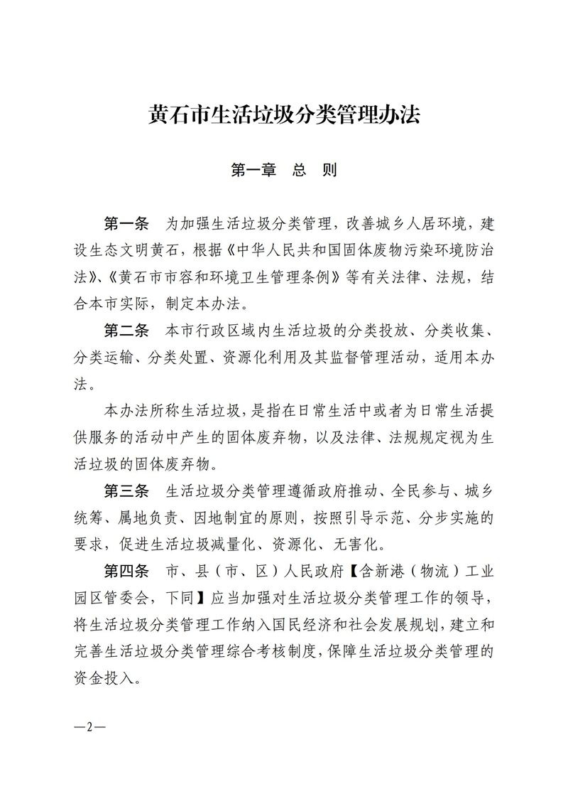 | 文件名稱 | 《黃石市生活垃圾分類管理辦法》 |
