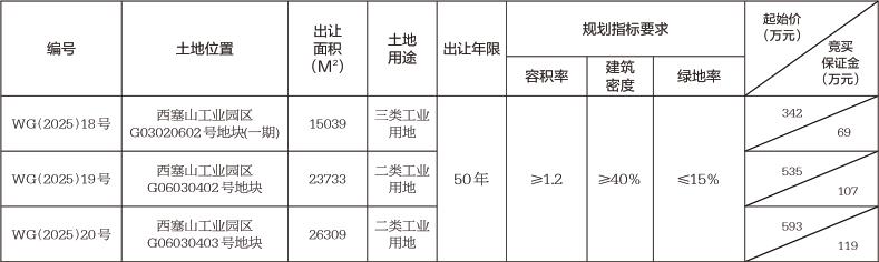 3.本次出讓地塊,競得人必須在出讓合同生效之日起30日內(nèi)繳清土地出讓價款。WG(2025)19號、20號地塊,需在簽訂《成交確認書》之日起10個工作日內(nèi)與市自然資源和城鄉(xiāng)建設(shè)局簽訂土地出讓合同。