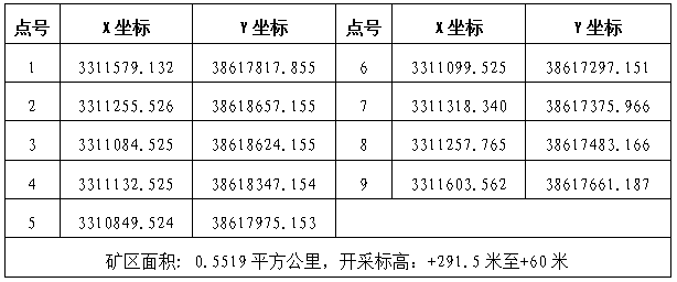 (五)礦區范圍由9個拐點坐標圈定,面積0.5519平方千米,開采深度為+291.5米至+60米;開采礦種:建筑石料用白云巖;開采方式:露天開采;資源儲量:采礦權礦區范圍內估算建筑石料用白云巖礦資源量10852.66萬噸,其中:控制資源量5166.26萬噸、推斷資源量5686.40萬噸。