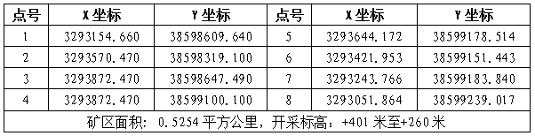 擬設(shè)采礦權(quán)范圍拐點(diǎn)坐標(biāo)表