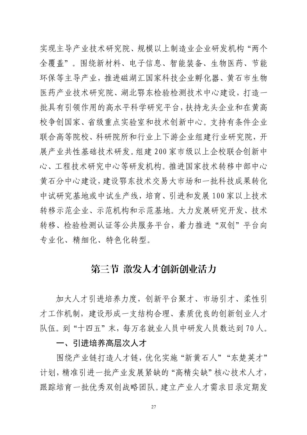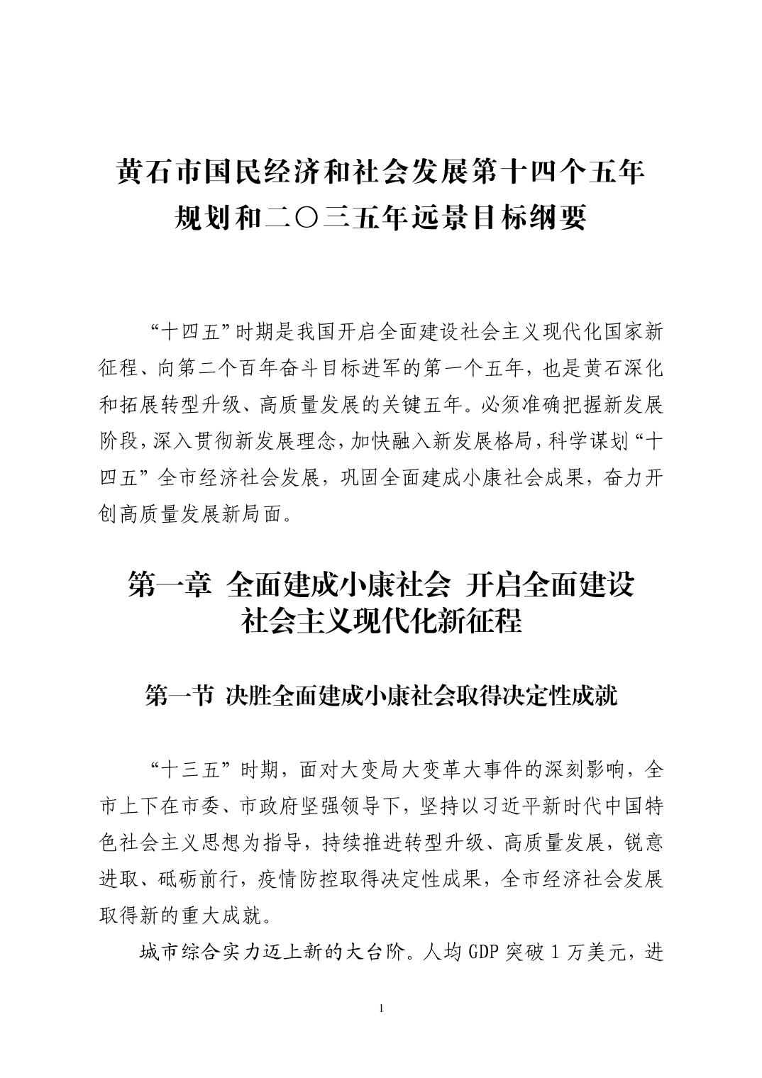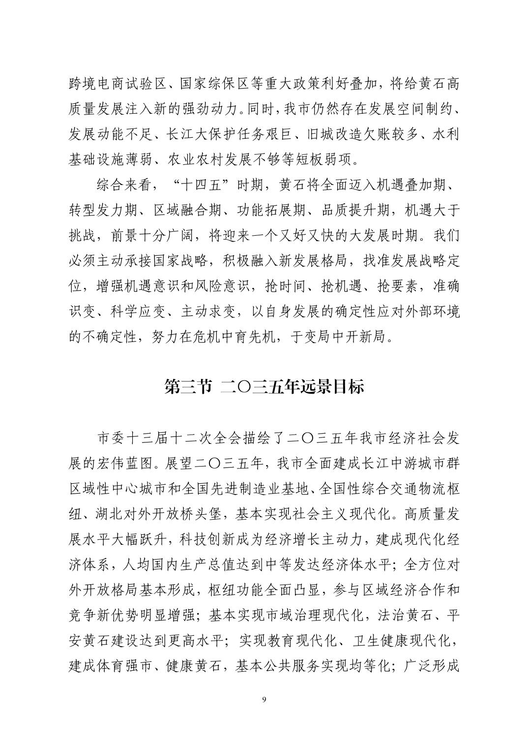 黃石市國民經濟和社會發展第十四個五年規劃和二〇三五年遠景目標綱要(發布版)