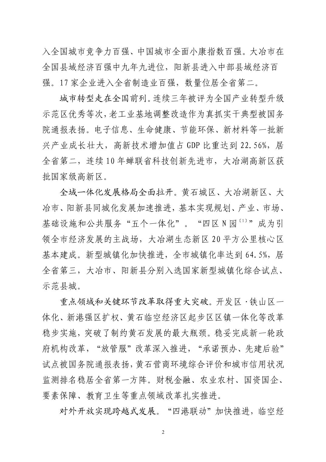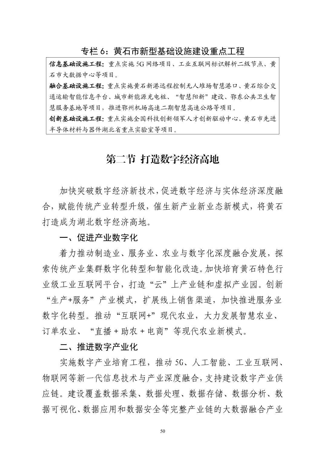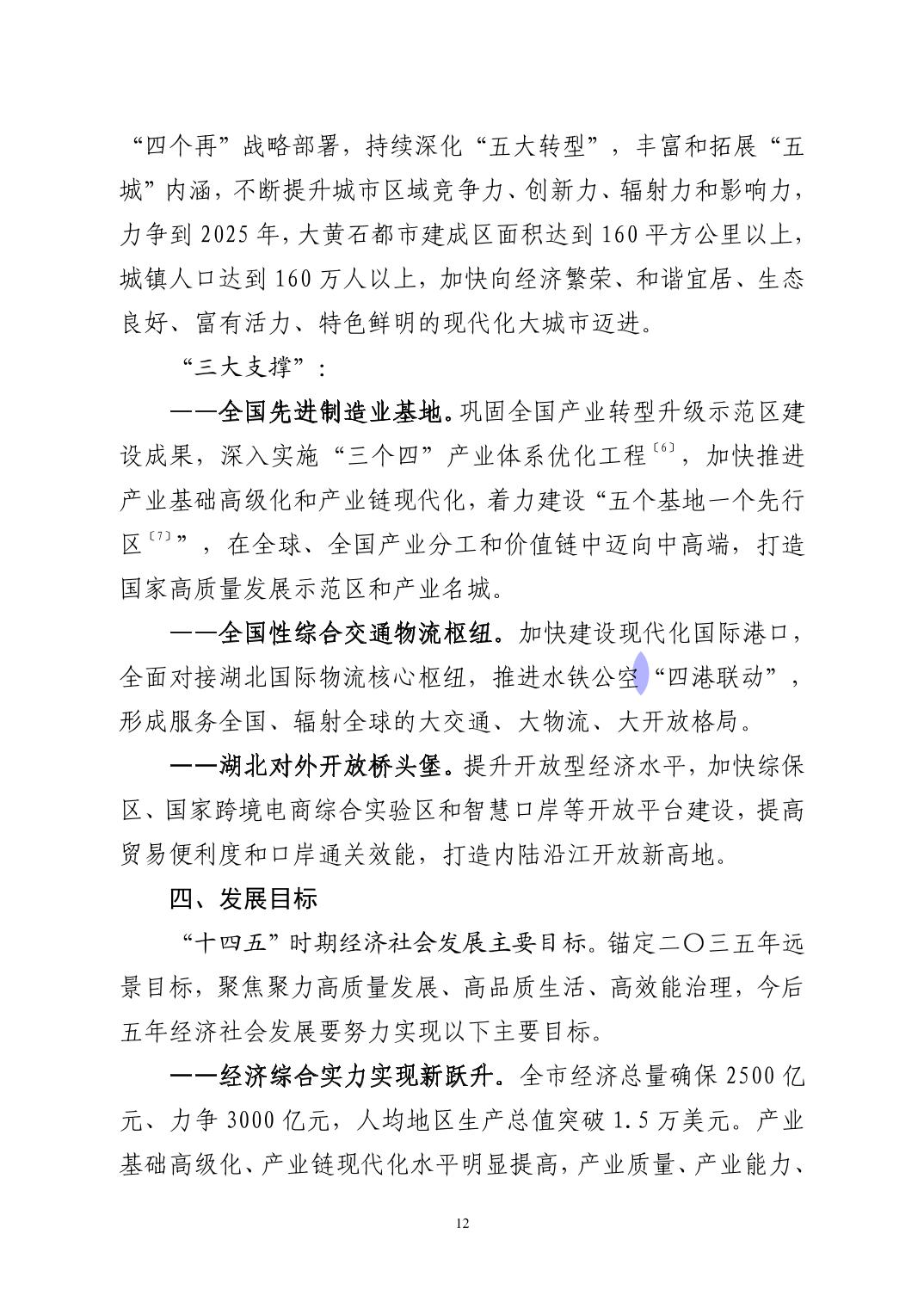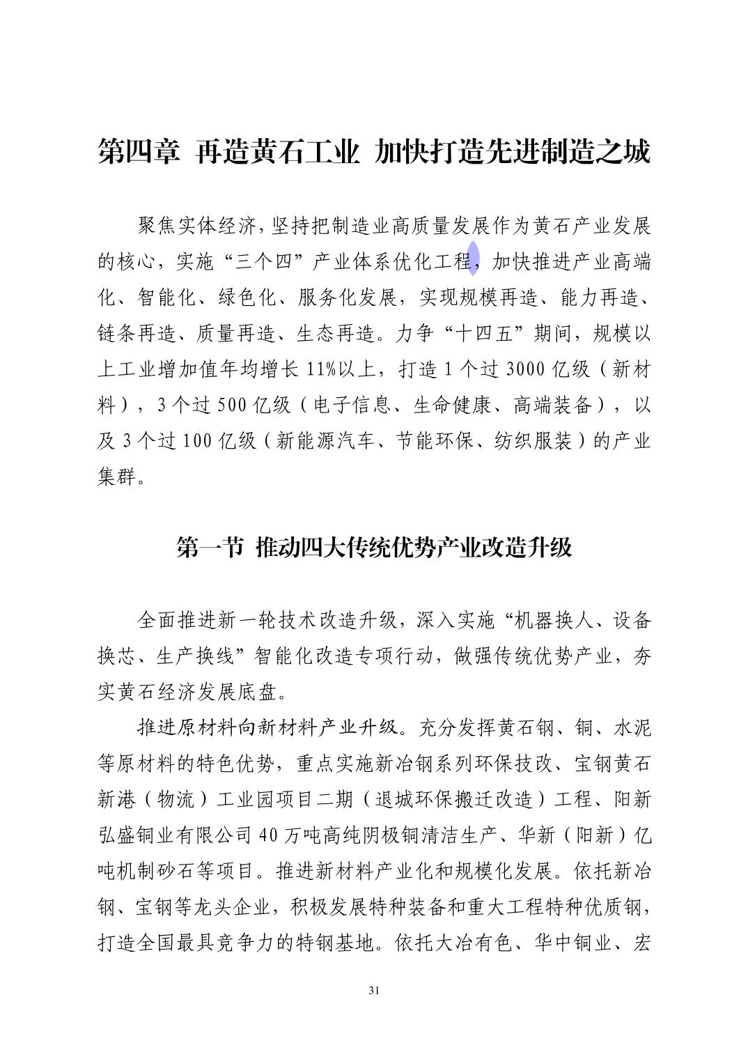黃石市國民經濟和社會發展第十四個五年規劃和二〇三五年遠景目標綱要(發布版)