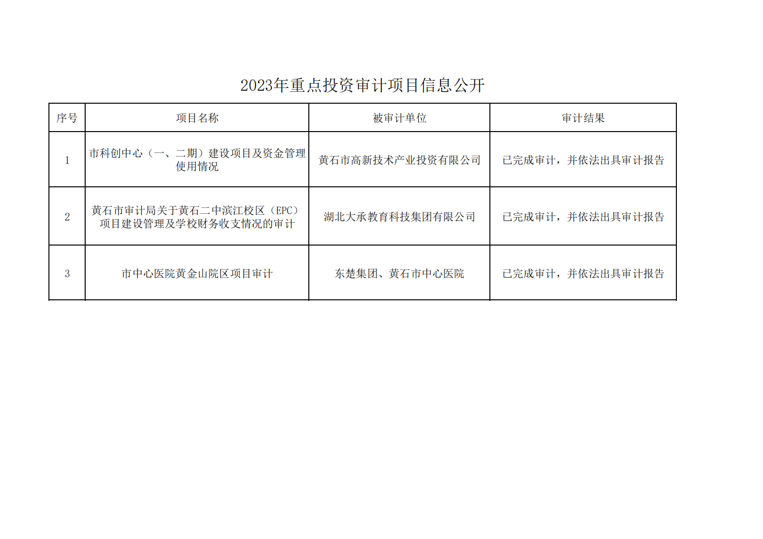 2023年重點投資審計項目信息公開