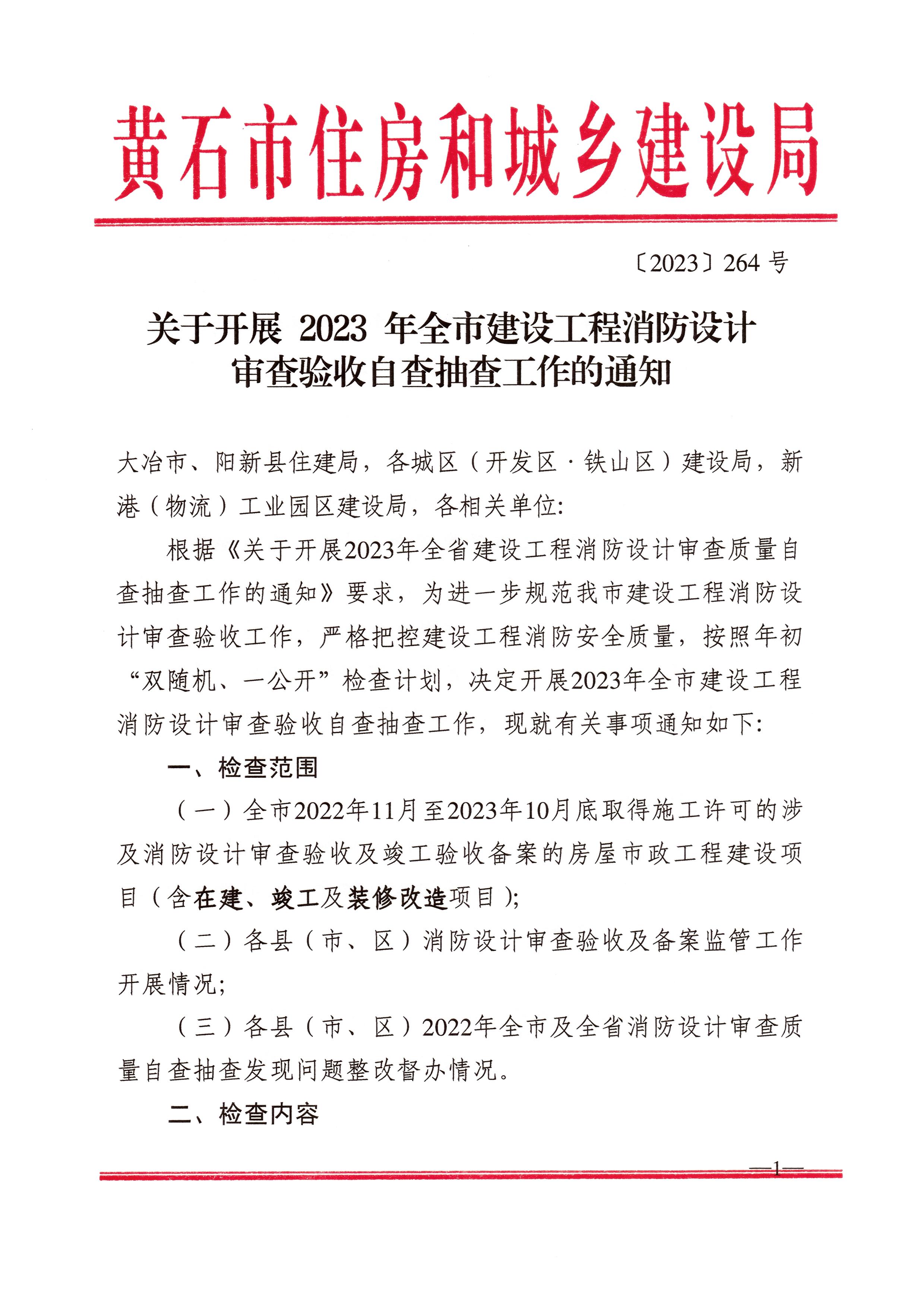 關于開展 2023 年全市建設工程消防設計審查驗收自查抽查工作的通知