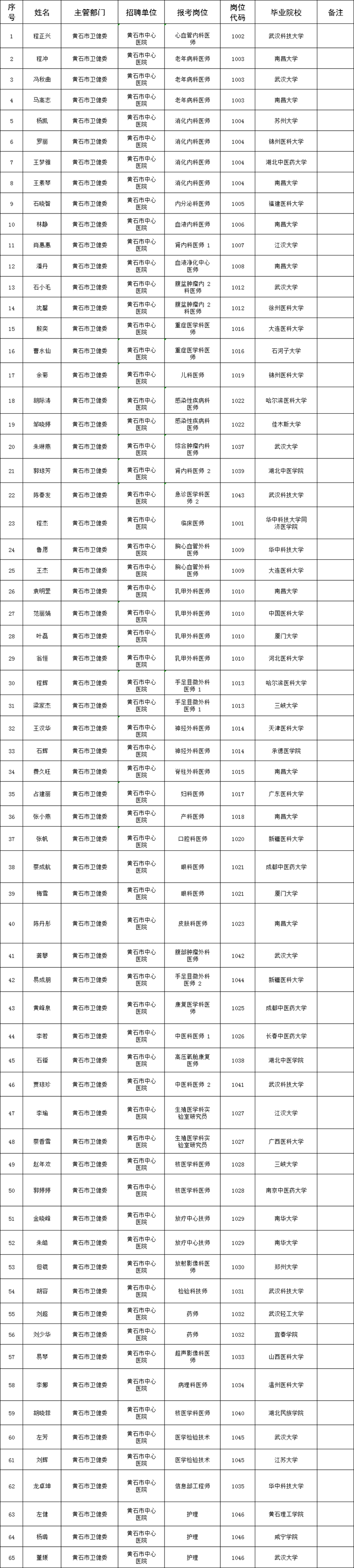 附件:《黃石市中心醫院2024年度事業單位公開招聘工作人員崗位擬聘用人員名單》