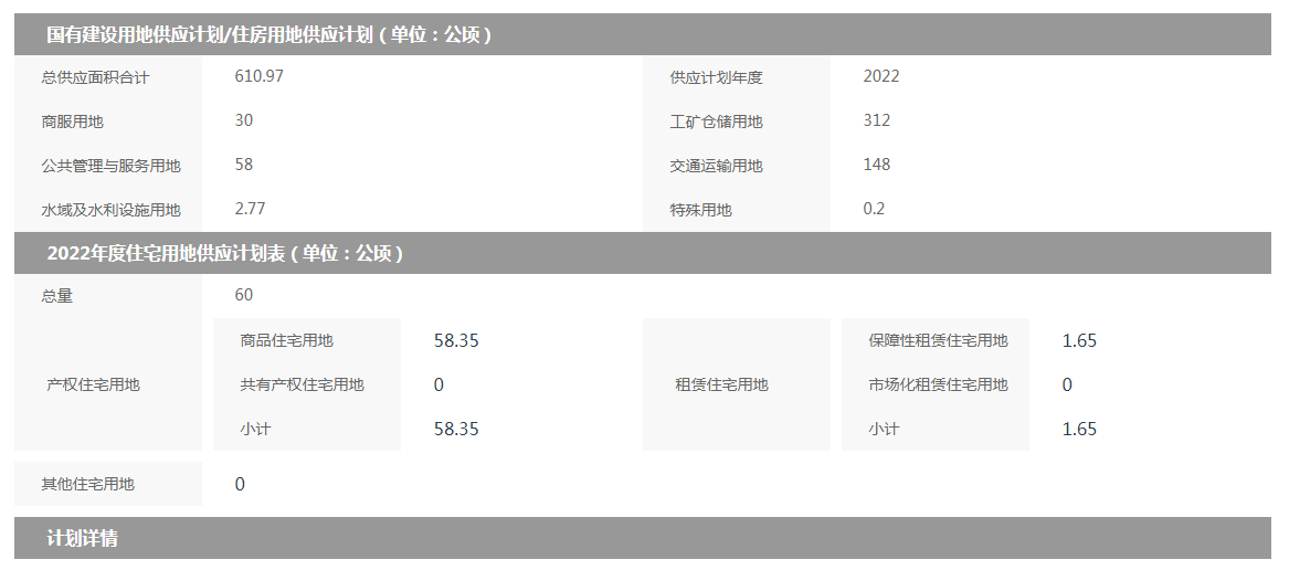 (一)供地總量。2022年度全縣計劃供應國有建設用地610.97公頃(詳見附件1)。