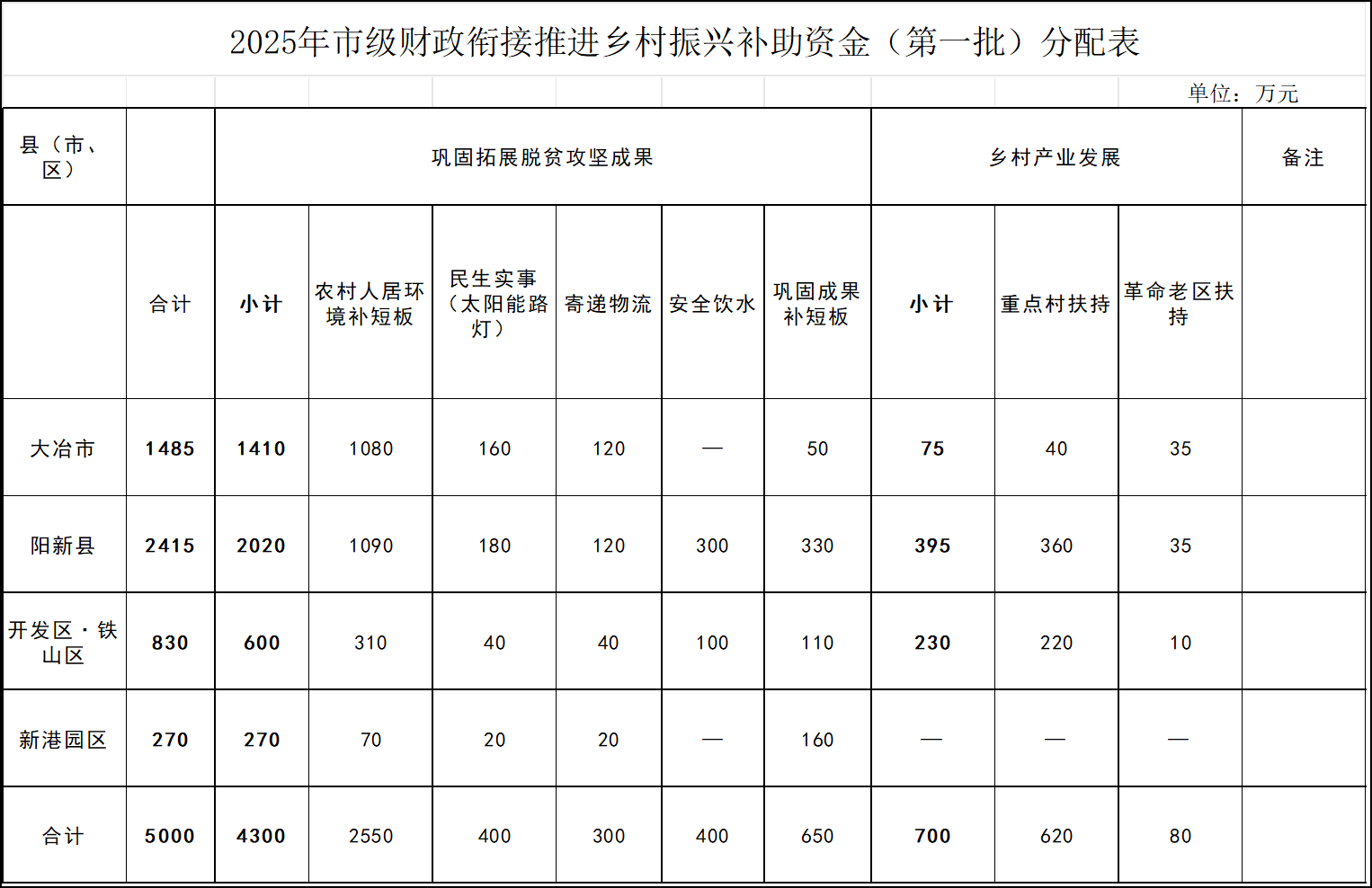 2025年市級財政銜接推進鄉村振興補助資金(第一批)分配表