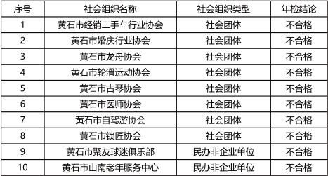 社會組織年檢不合格名單(含社會團體、民辦非企業單位)