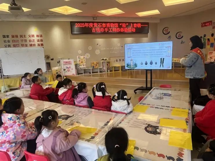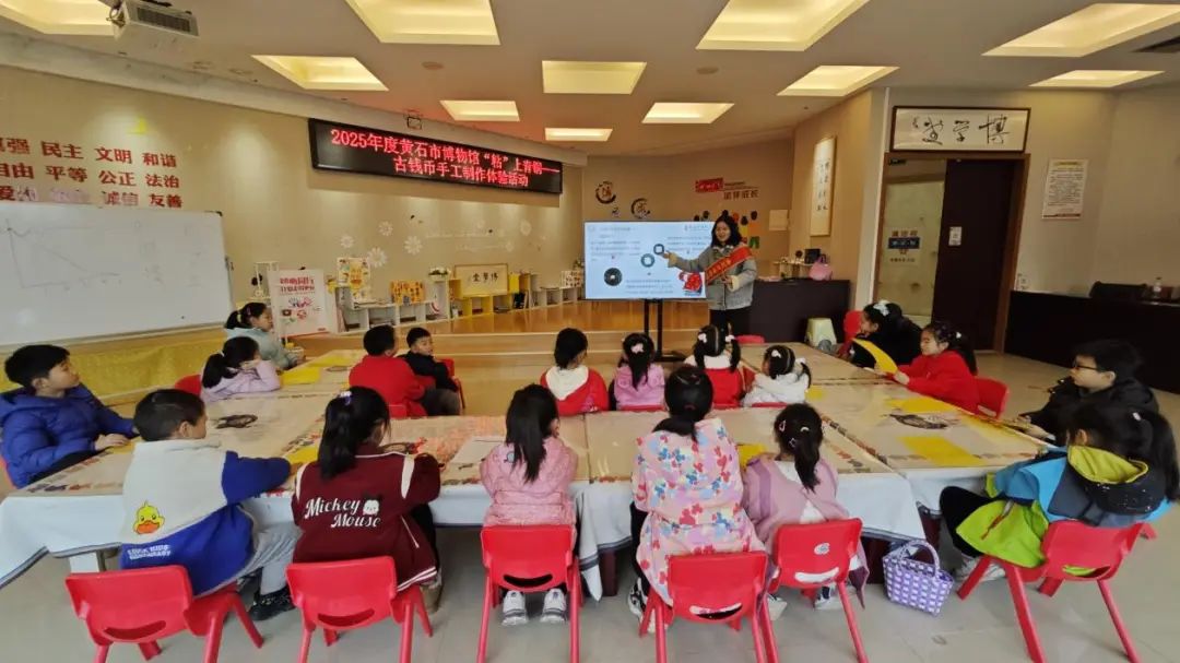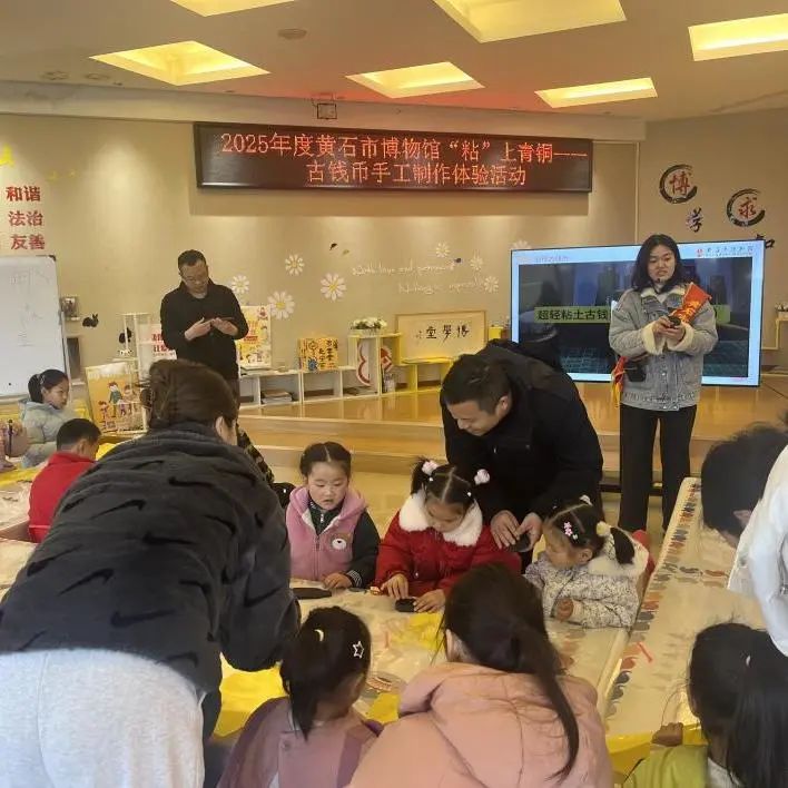 從夏晚期的貝幣到秦漢的方孔圓錢,明清的銀元寶鈔、民國的券鈔大洋,再到新中國人民幣的出現。錢幣不僅見證了時代的變革與發展,也是傳統文化中不可或缺的一部分。3月8日上午,黃石市博物館博學堂開展以“‘粘’上青銅——古錢幣手工制作體驗”為主題的社教活動,30余名學生及家長參加其中,感受古代錢幣的歷史魅力。