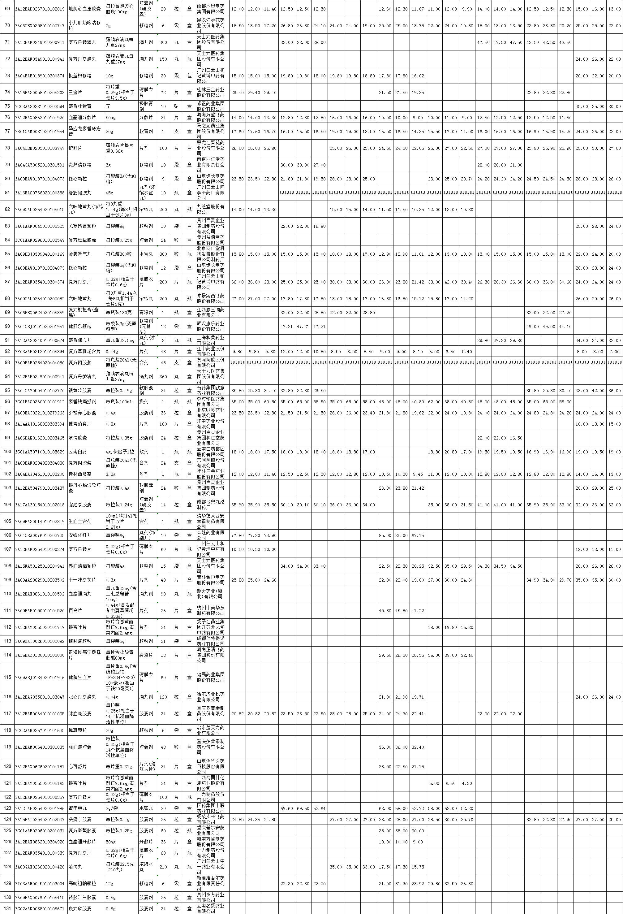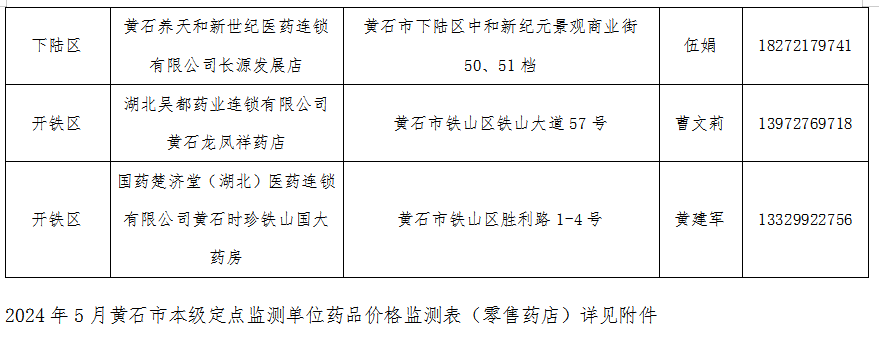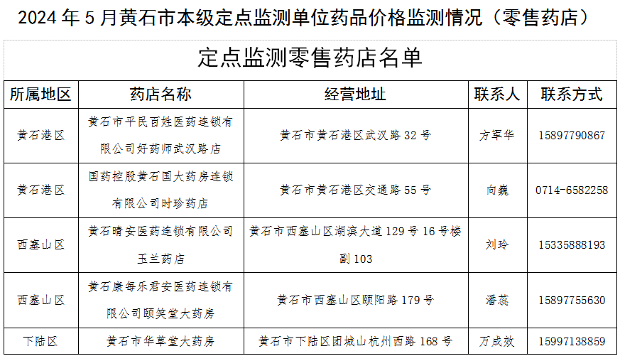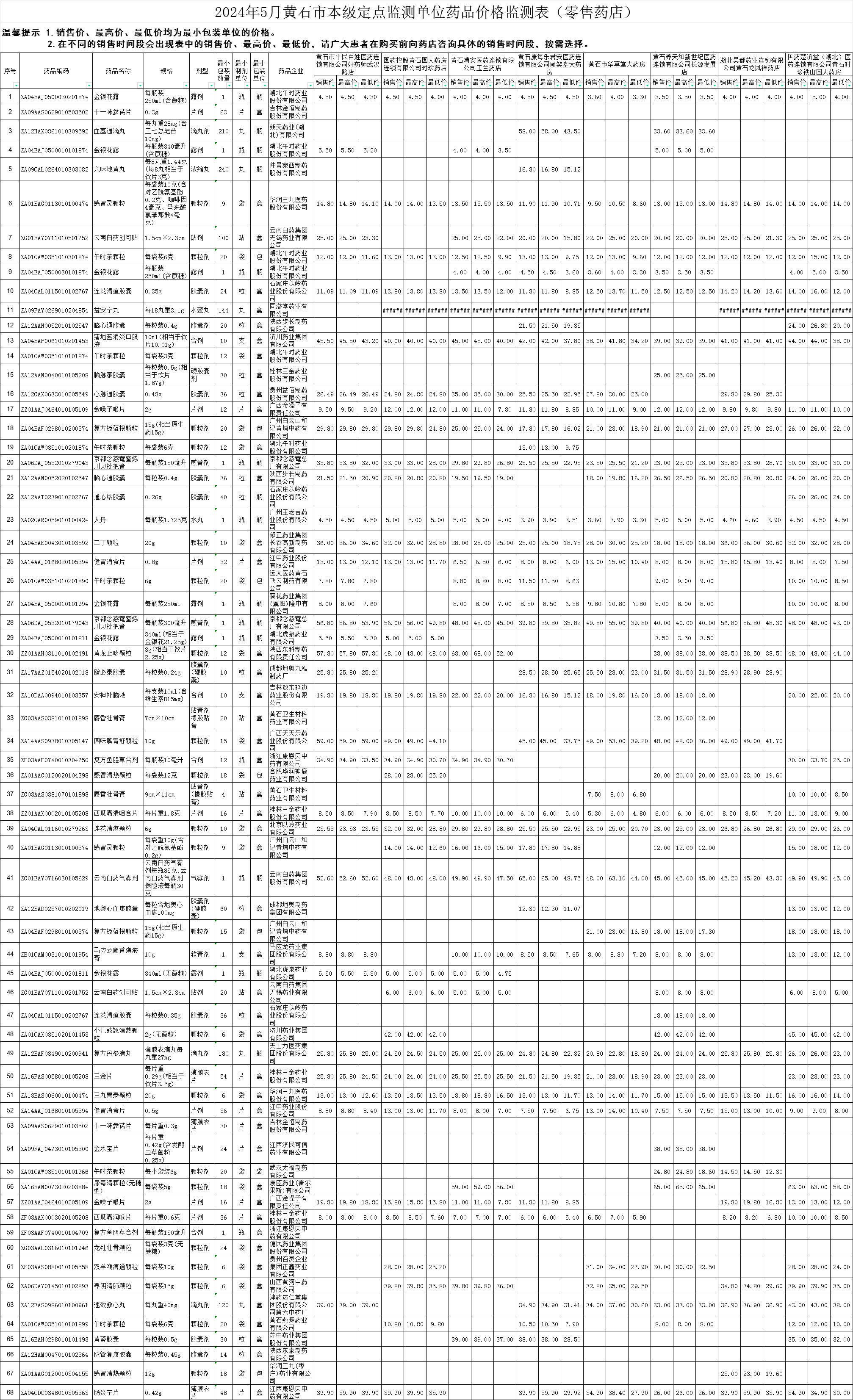 2024年5月黃石市本級定點監測單位藥品價格監測情況(零售藥店)