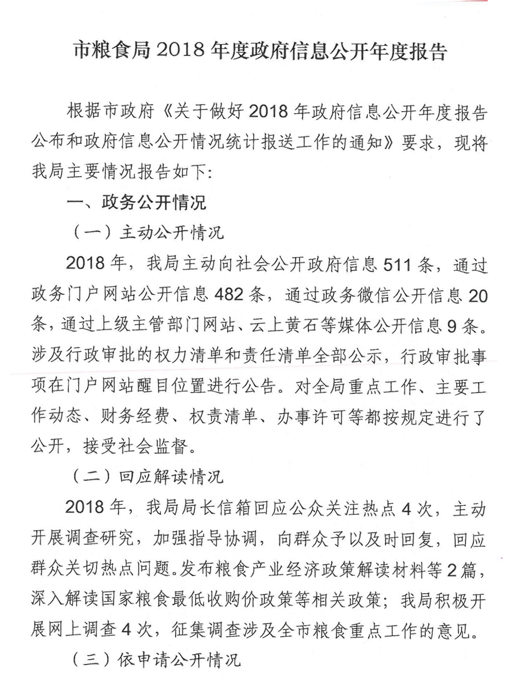 市糧食局2018年度政府信息公開年度報告
