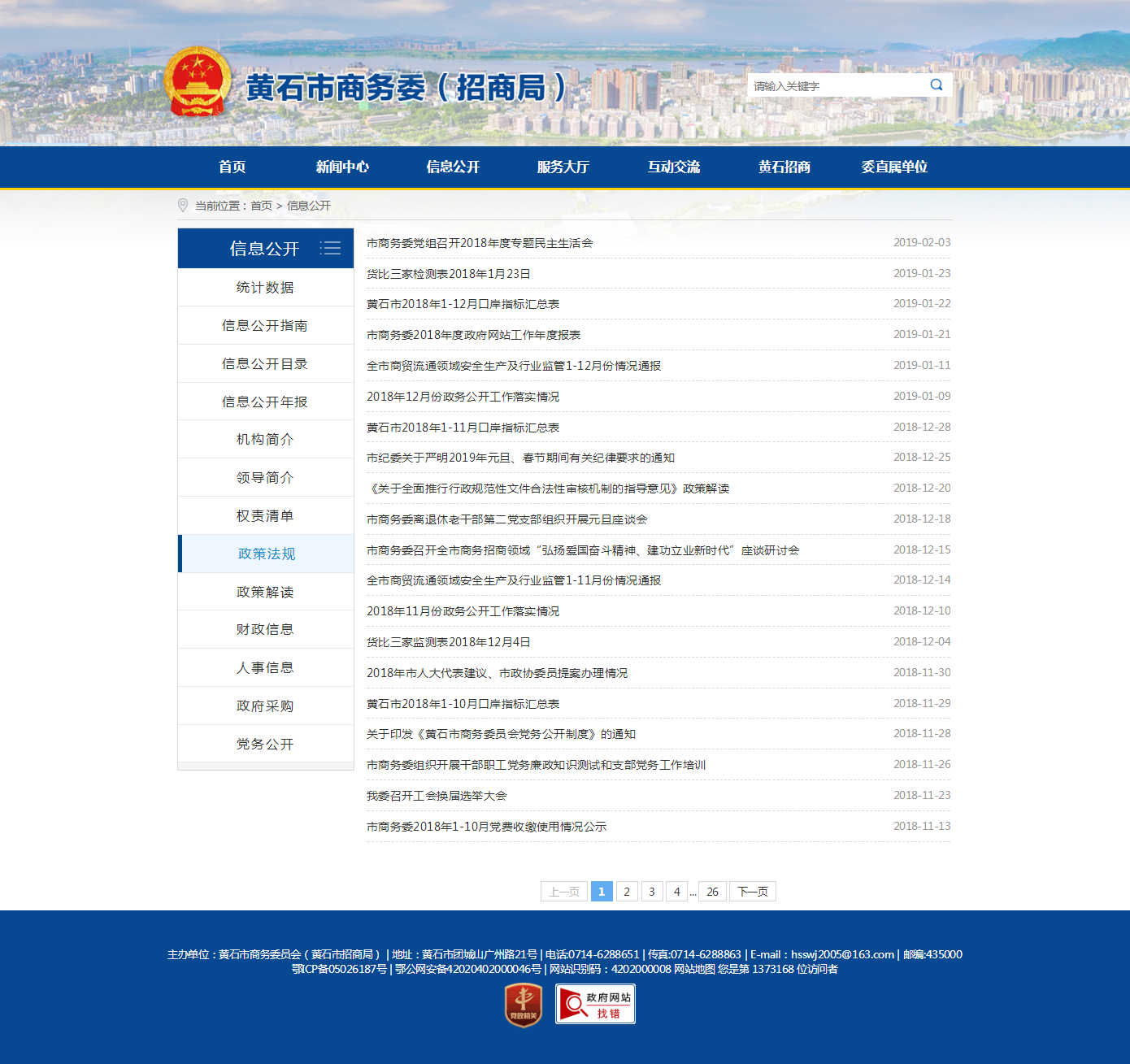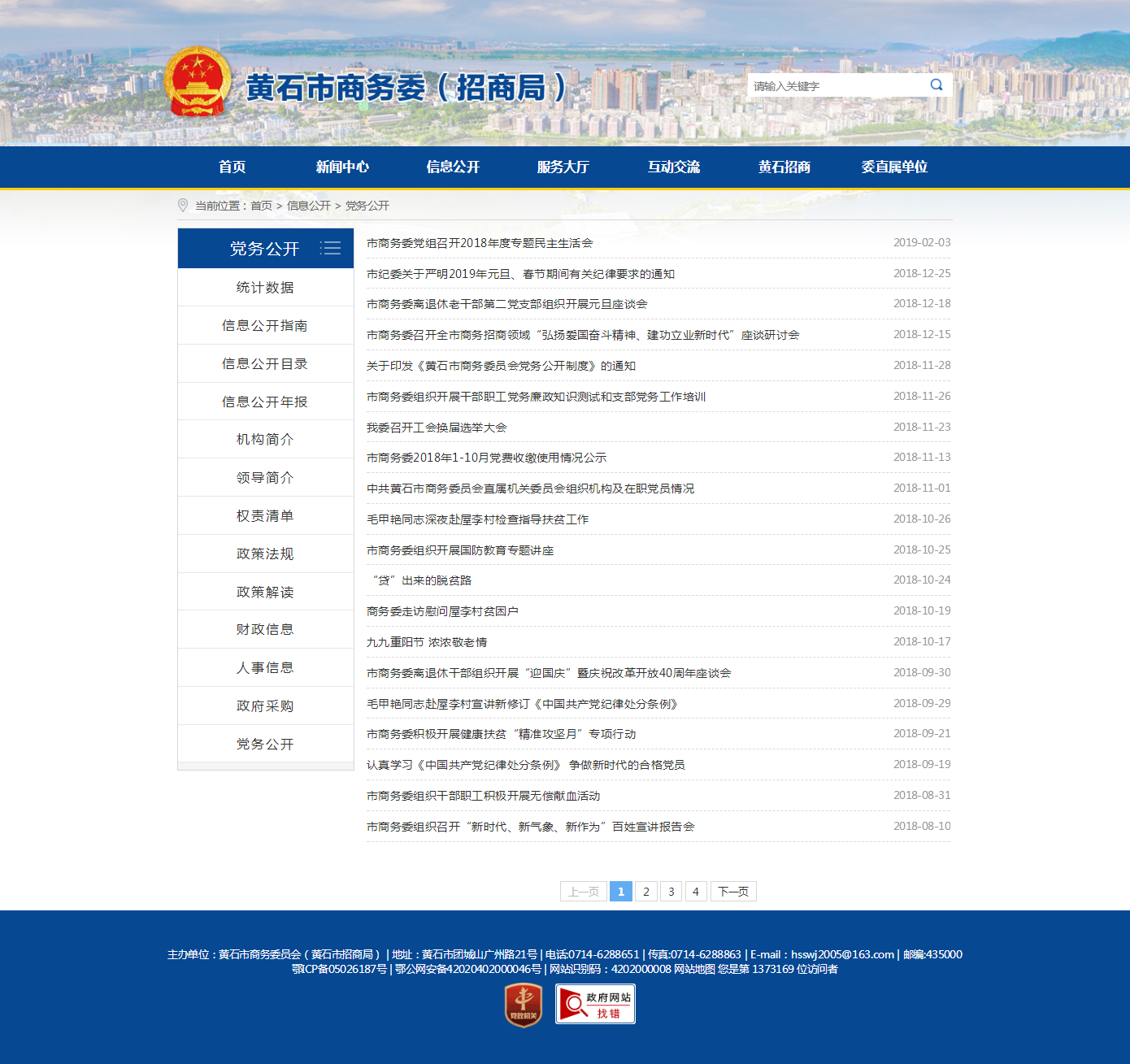 2、完善公開制度。大力推進信息公開工作制度建設,進一步完善《黃石市商務委政府信息公開指南》以及《市商務委政府信息公開目錄》,嚴格按照上級要求開展信息公開工作。印發《黃石市商務委黨務公開制度》(黃商機關黨委〔2018〕23號),在委網站新增“黨務公開”專欄,實時更新黨務公開內容。