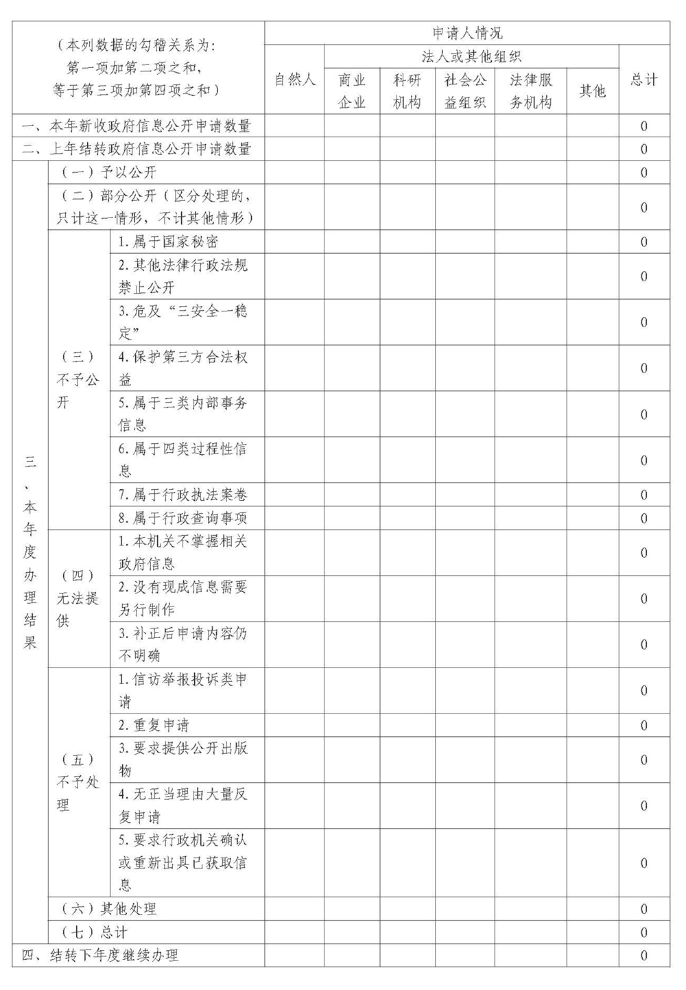 三、收到和處理政府信息公開申請情況