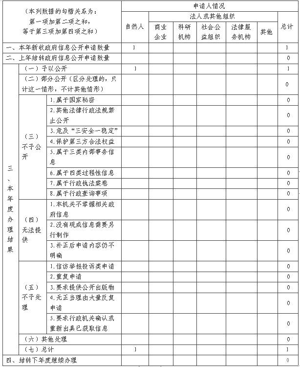 三、收到和處理政府信息公開申請情況