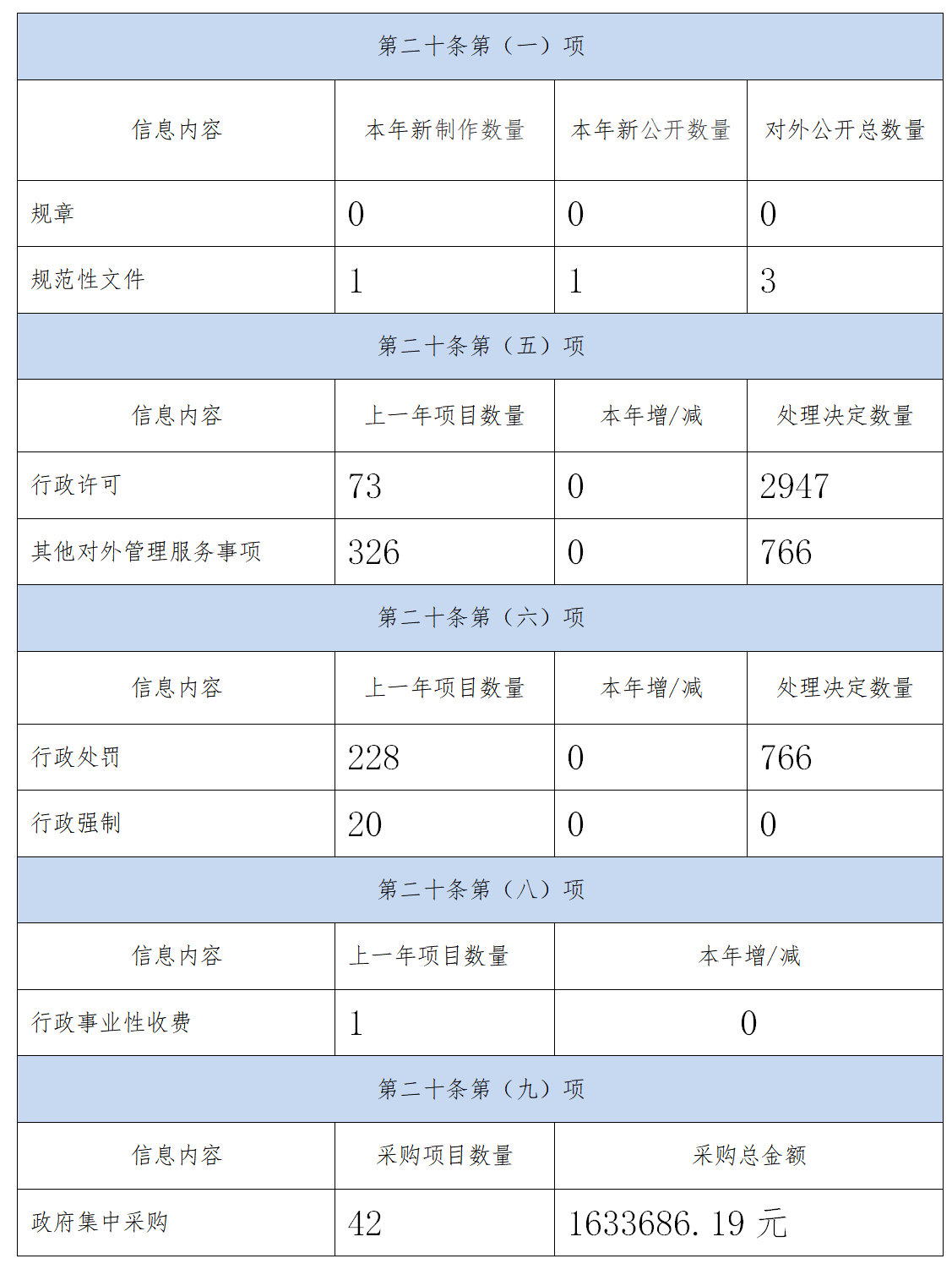 按照“以公開為原則,不公開為例外”要求,認真落實政府信息公開的主體責任,以本部門網站為主陣地,積極拓展微信、報刊、廣播、電視等渠道,全面、準確、及時公開政府信息,全年共主動公開政府信息2194條。其中:政府網站公開政府信息1450條,政務微信公開政府信息216條,報刊、廣播、電視等其他渠道公開政府信息528條。
