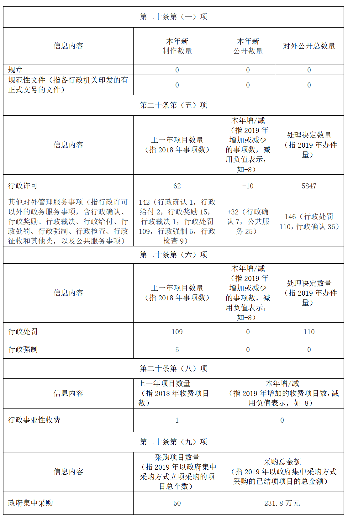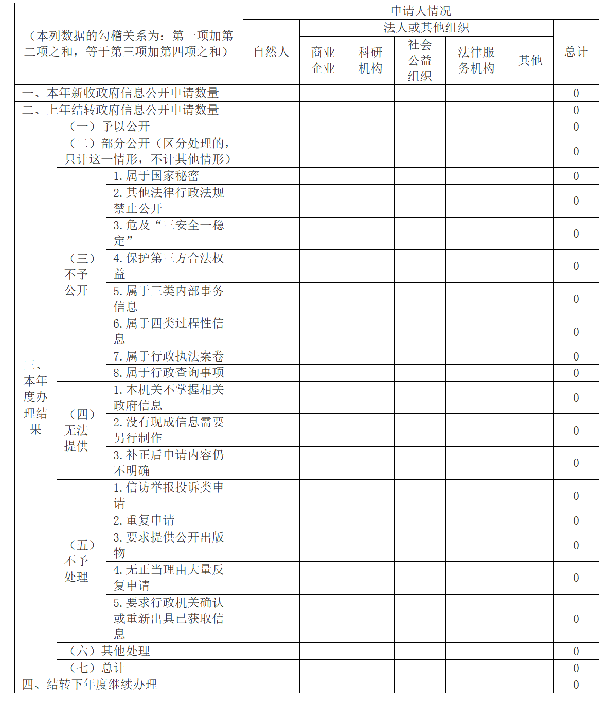 三、2019年收到和處理政府信息公開申請情況