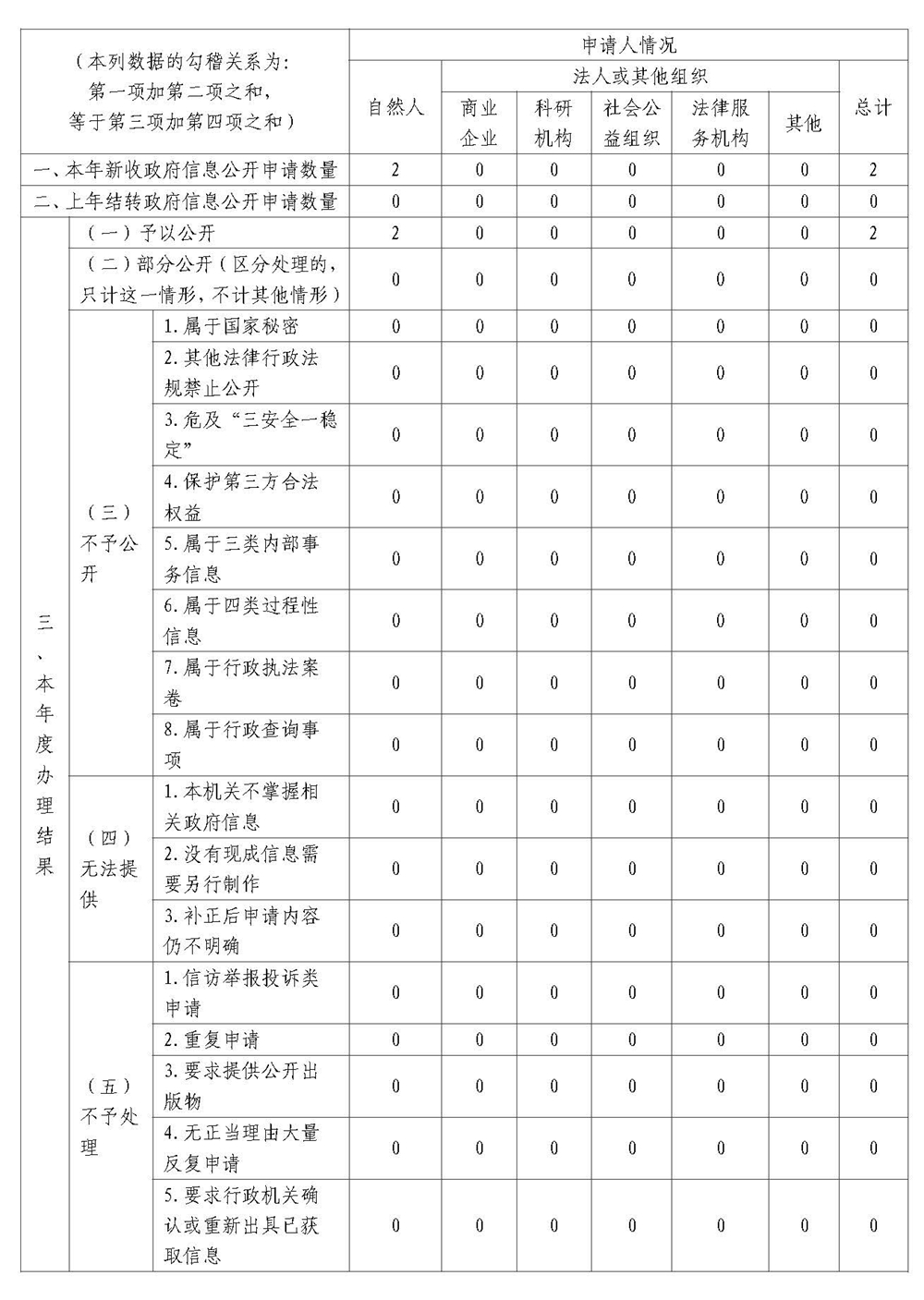 2019年我局新收依申請公開2條,申請人均為自然人,予以公開的信息內容已及時通過郵寄的形式發送給申請人。