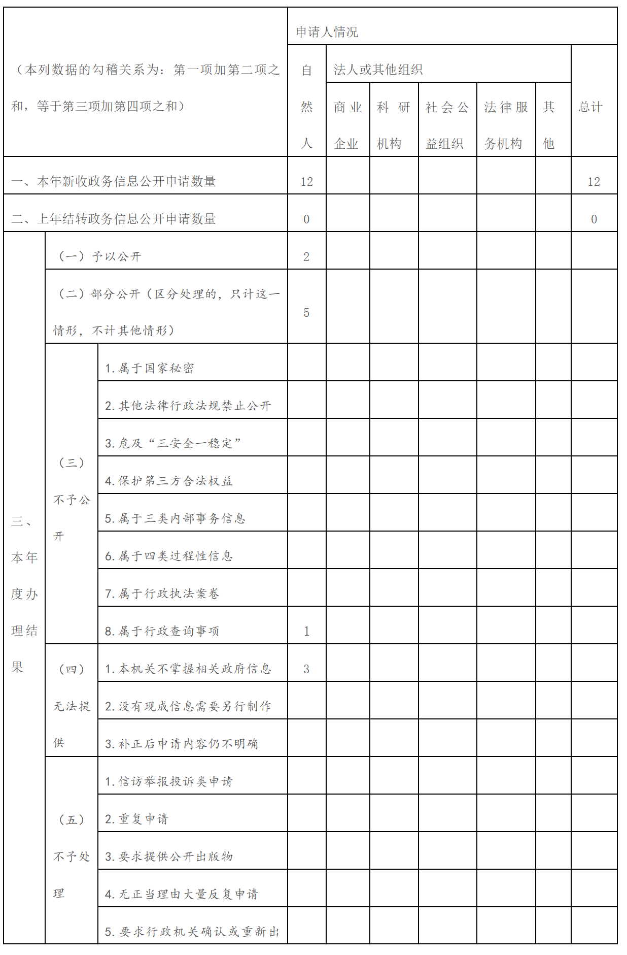 2019年我局收到依申請公開12 件,已辦結11件,1件結轉2020年辦理。