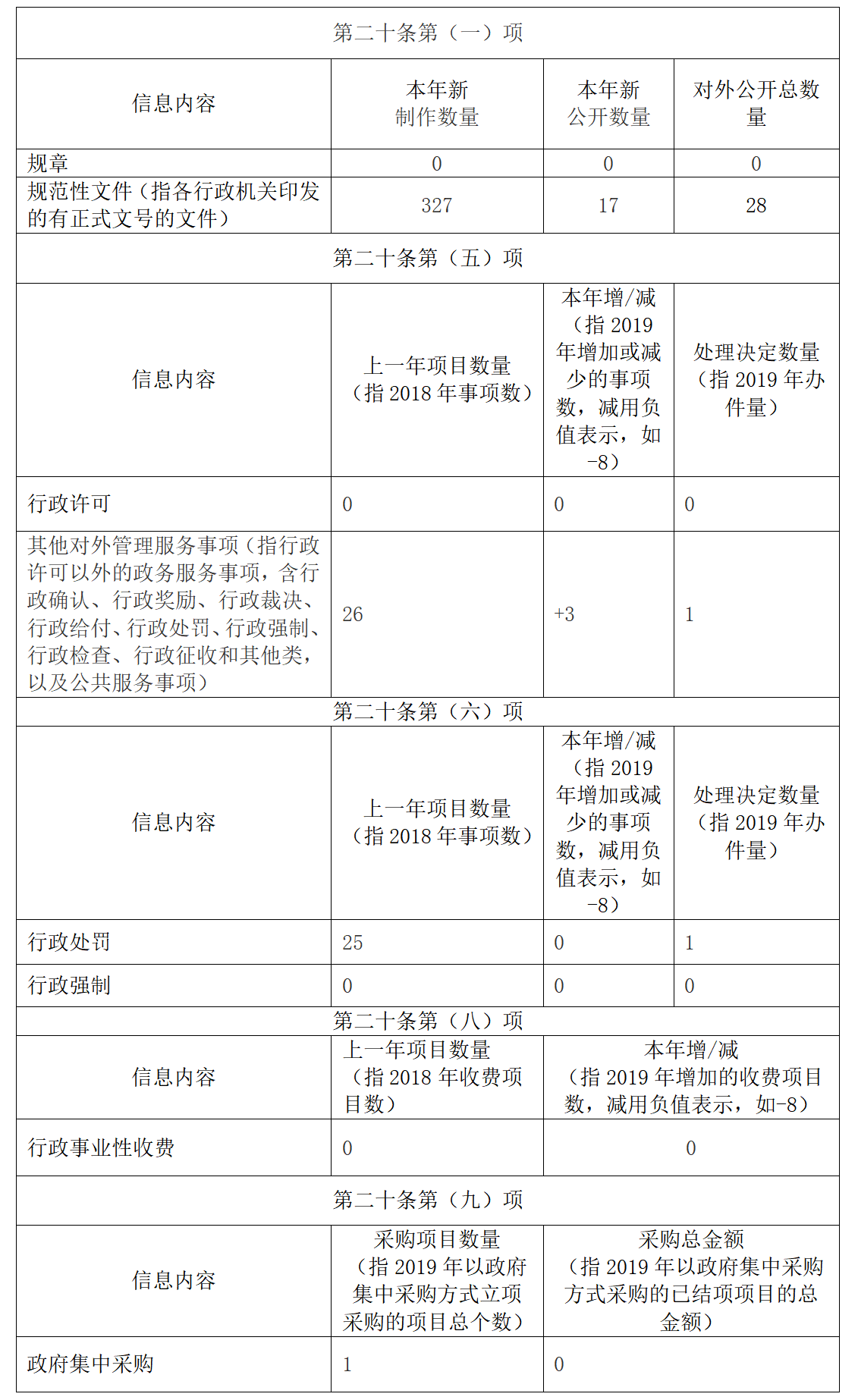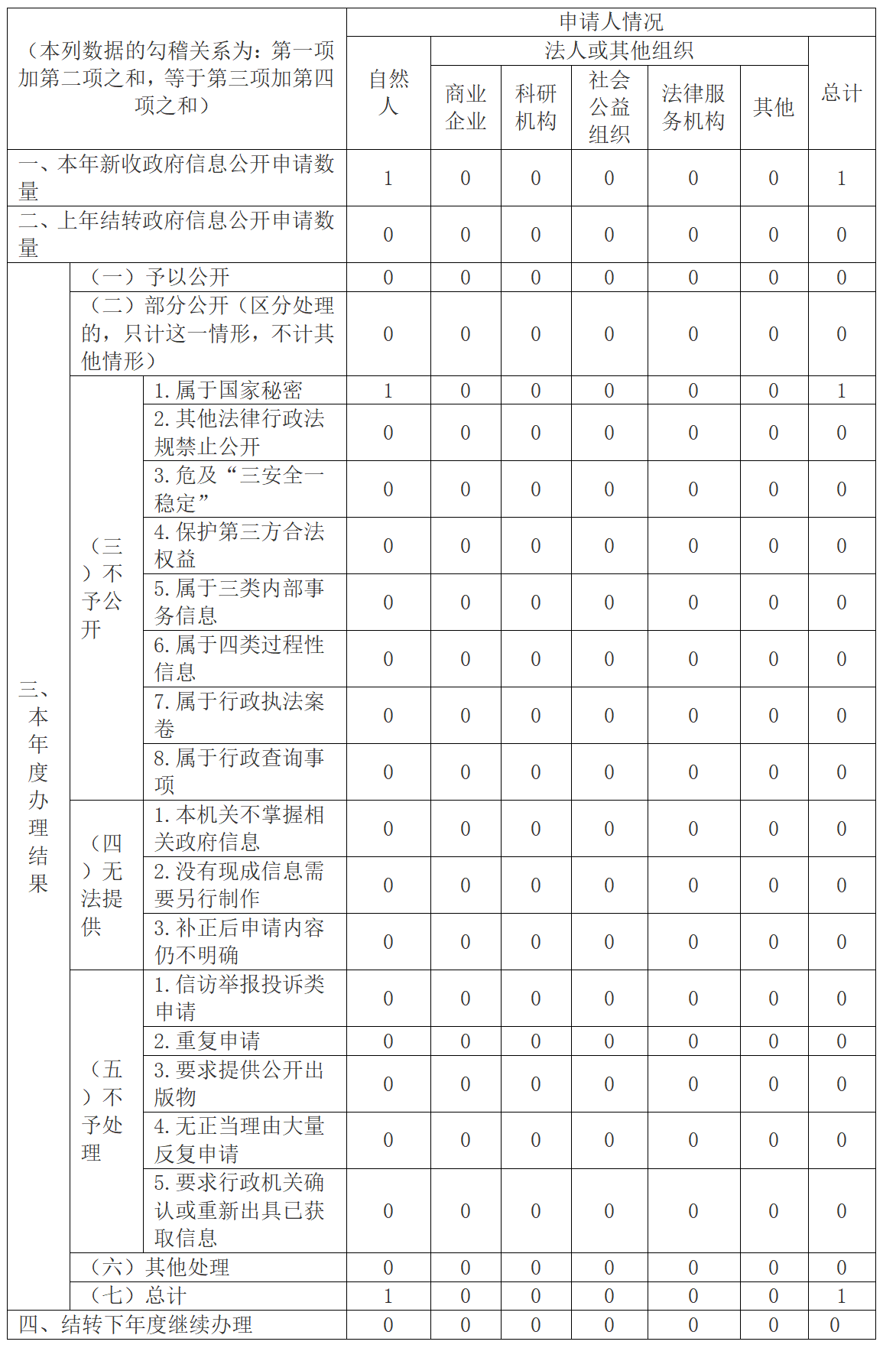 2019年,我局收到信息公開申請1條,因為屬于國家秘密范疇,不予公開,已及時電話答復(fù)申請。