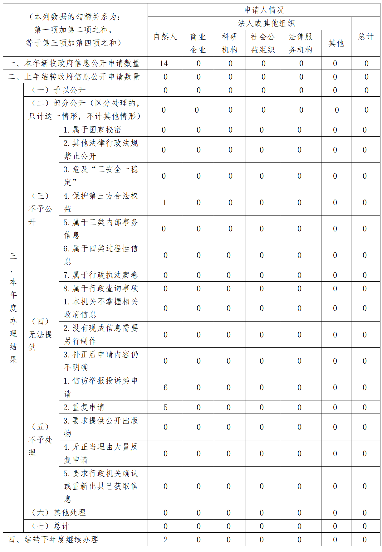 三、收到和處理政府信息公開申請情況