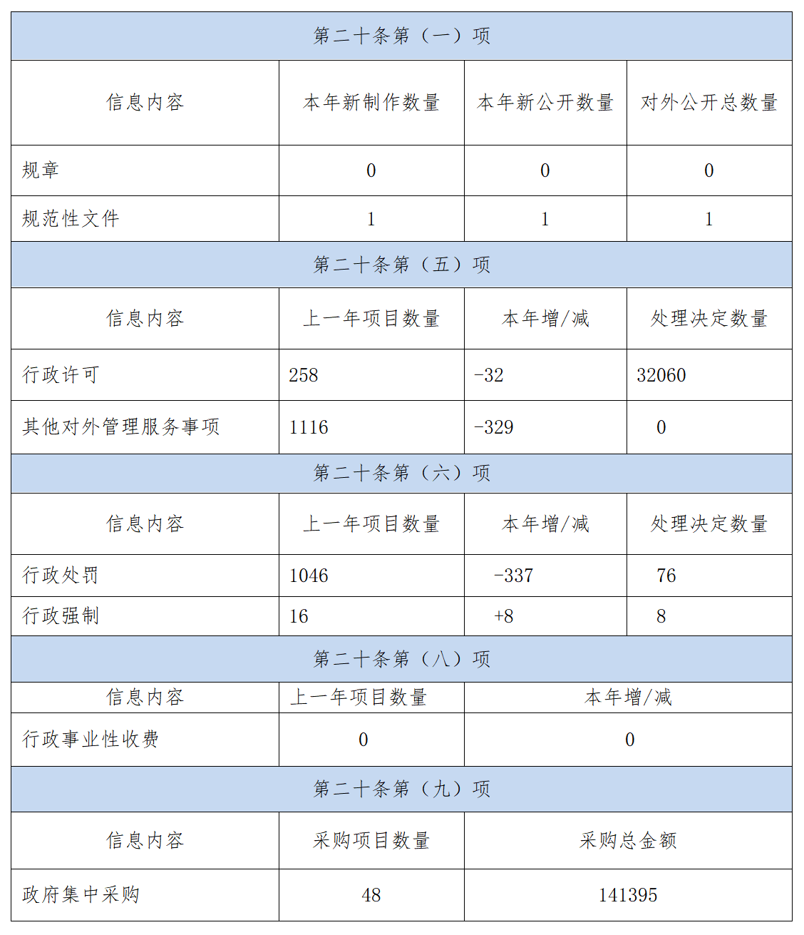 除主動公開上述信息外,我局還主動公開有關單位財政預、決算信息等24條;扶貧工作動態、安全生產(特種設備)、食品藥品、產品質量監督檢查情況等50余條;發布公務員招考信息1條,并在國家有關法律法規規定范圍內盡可能公開其他政務信息,不斷豐富主動公開內容。