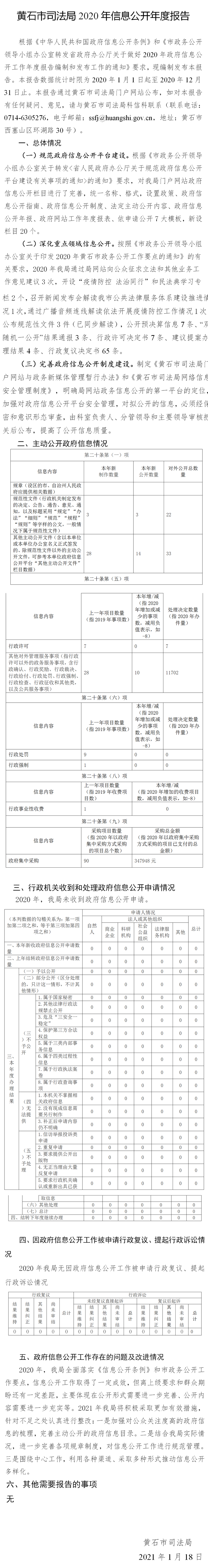 黃石市司法局2020年信息公開年度報告