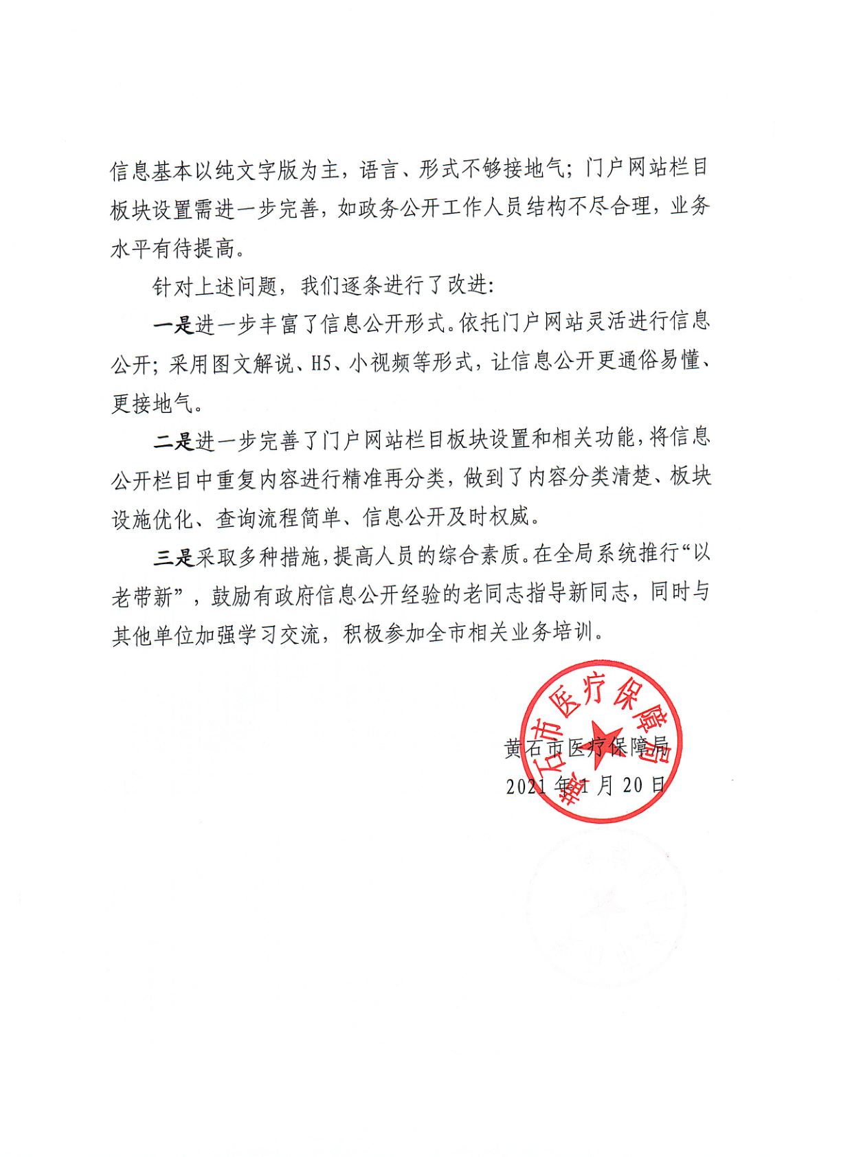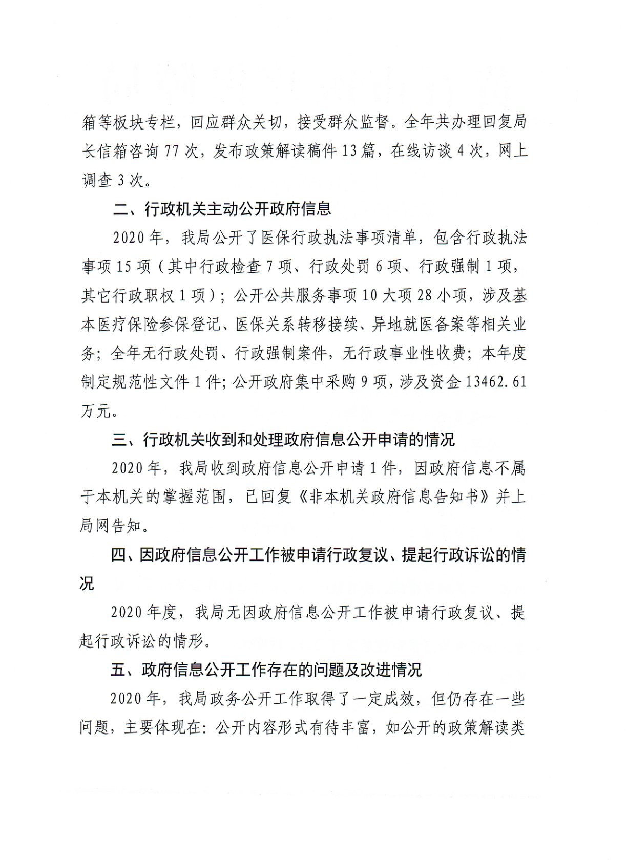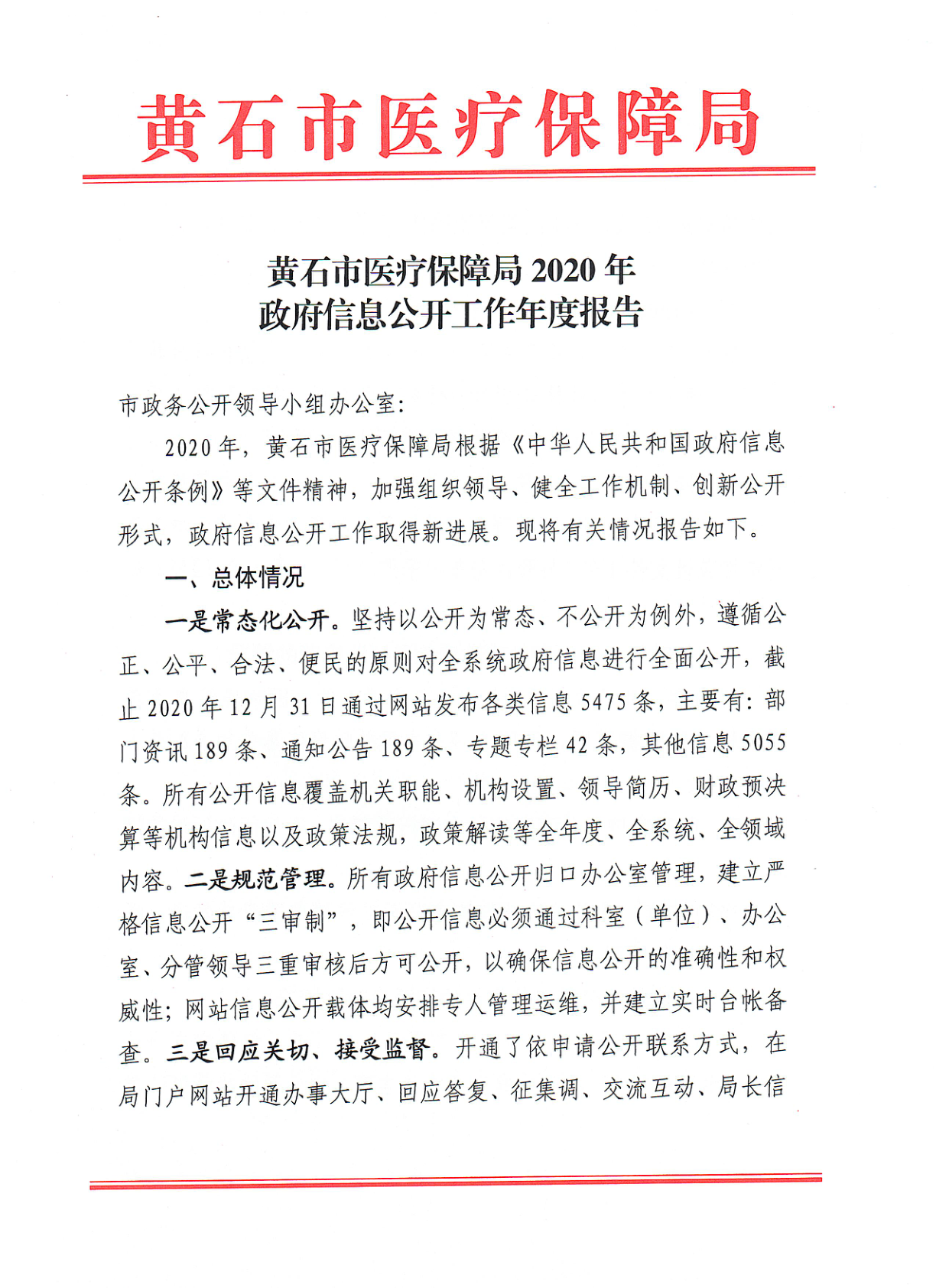 黃石市醫療保障局2020年政府信息公開工作年度報告