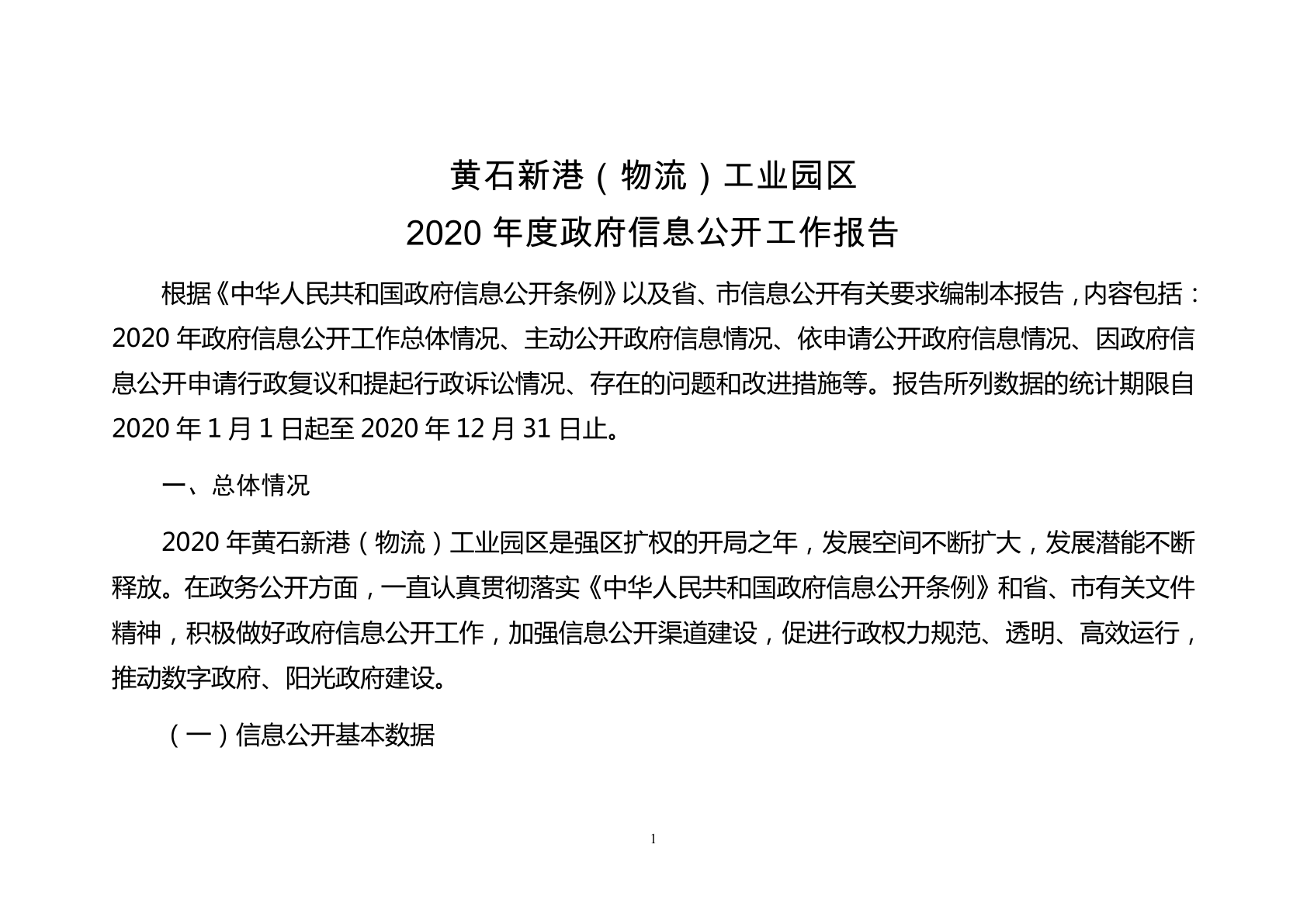 黃石新港(物流)工業園區2020年政府信息公開年度報告