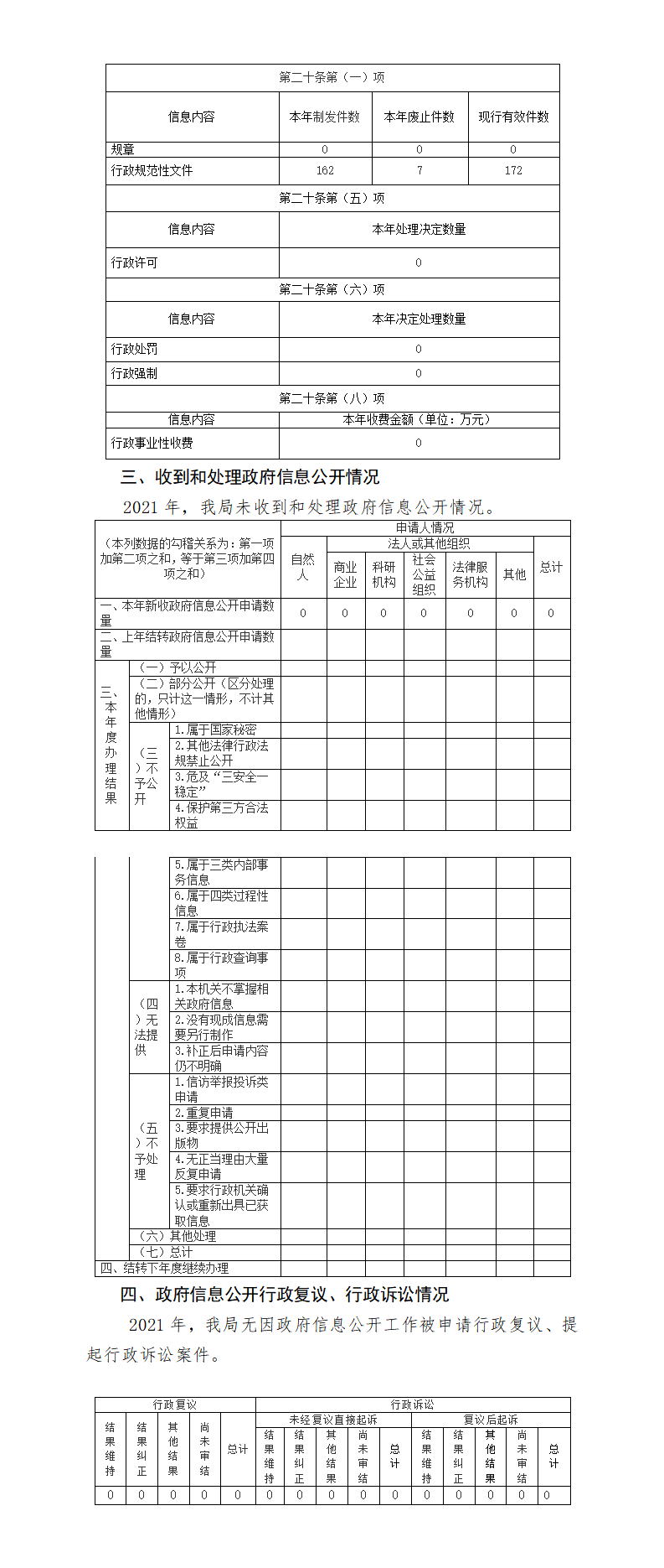 根據文件精神,結合實際,現向社會公布2021年度市經信局政府信息公開工作年度報告。從總體情況、主動公開政府信息情況、收到和處理政府信息公開申請情況、政府信息公開行政復議和行政訴訟情況、存在的問題及改進情況、其他需要報告的事項等方面進行了總結?,F將有關情況報告如下: