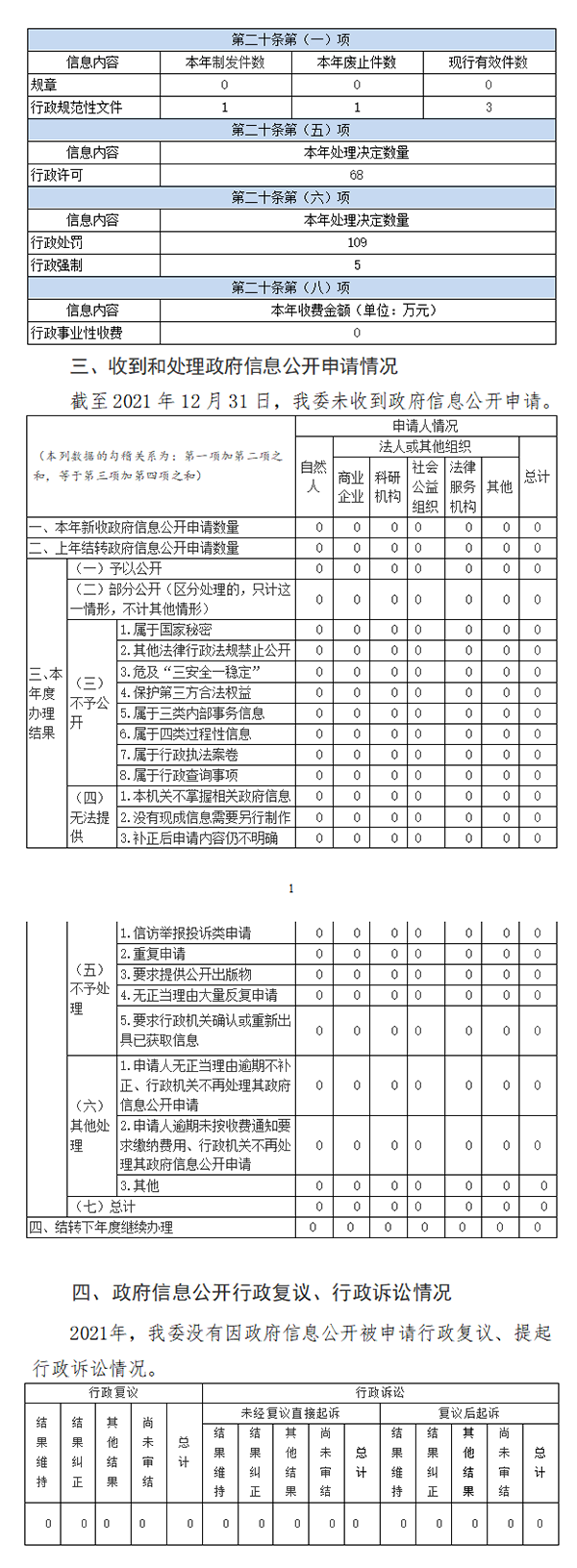 2021年,委網(wǎng)站主動(dòng)公開信息935條,機(jī)構(gòu)設(shè)置、政策法規(guī)、各類公文等信息42條;工作動(dòng)態(tài)136條;公示公告97條。重點(diǎn)信息方面,建議提案辦理結(jié)果5條,信用公示信息202條,水質(zhì)監(jiān)測數(shù)據(jù)365條,專題專欄88條。通過微信公眾號(hào)公開政策性措施、重點(diǎn)工作等,推送信息338條。