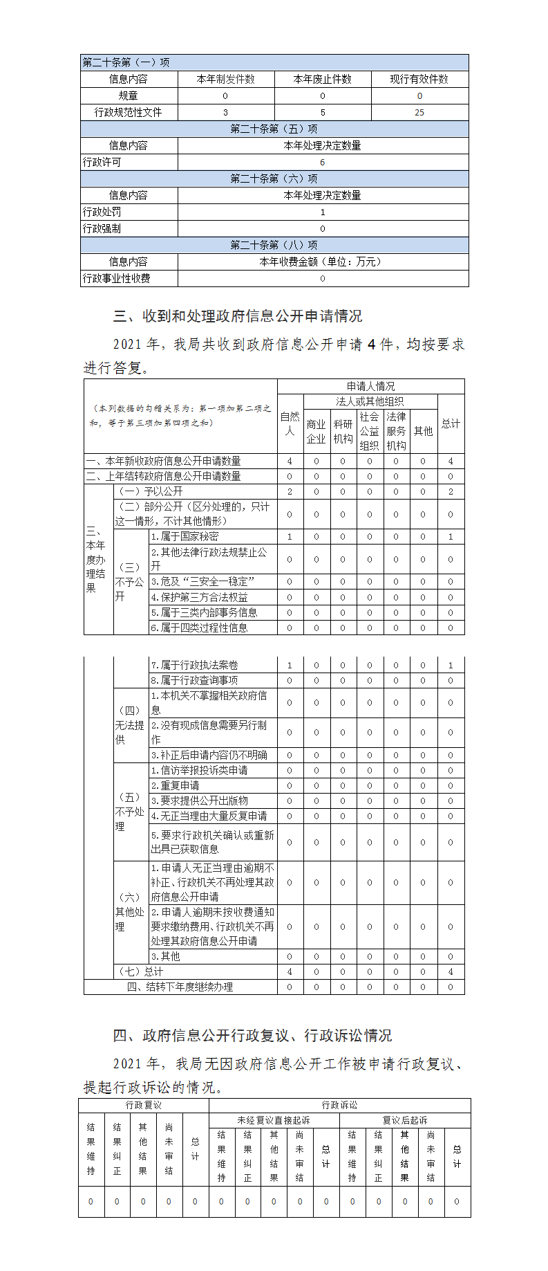 2021年,我局共收到政府信息公開申請4件,均按要求進行答復。