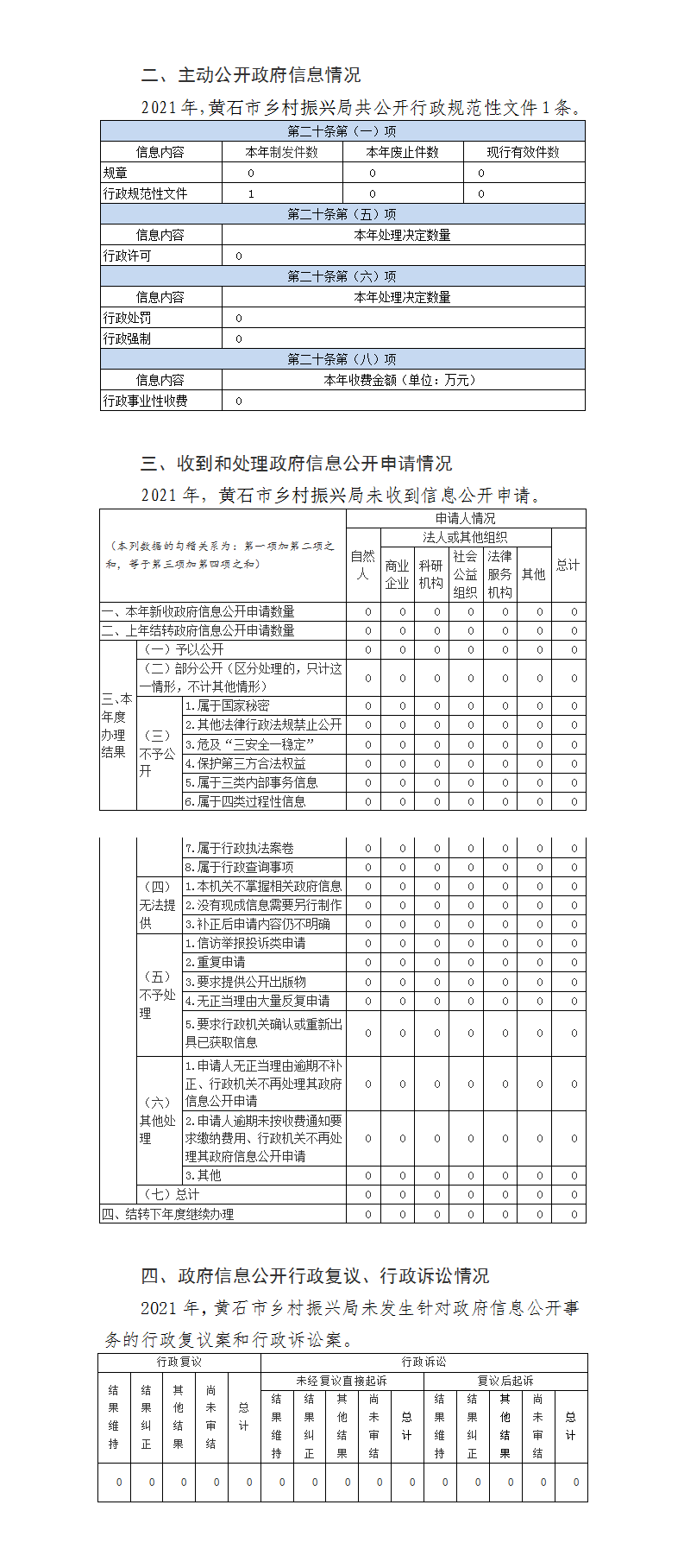 (二)政府信息依申請公開情況。截至2021年12月31日,我局共受理政府信息公開申請0件,答復0件。