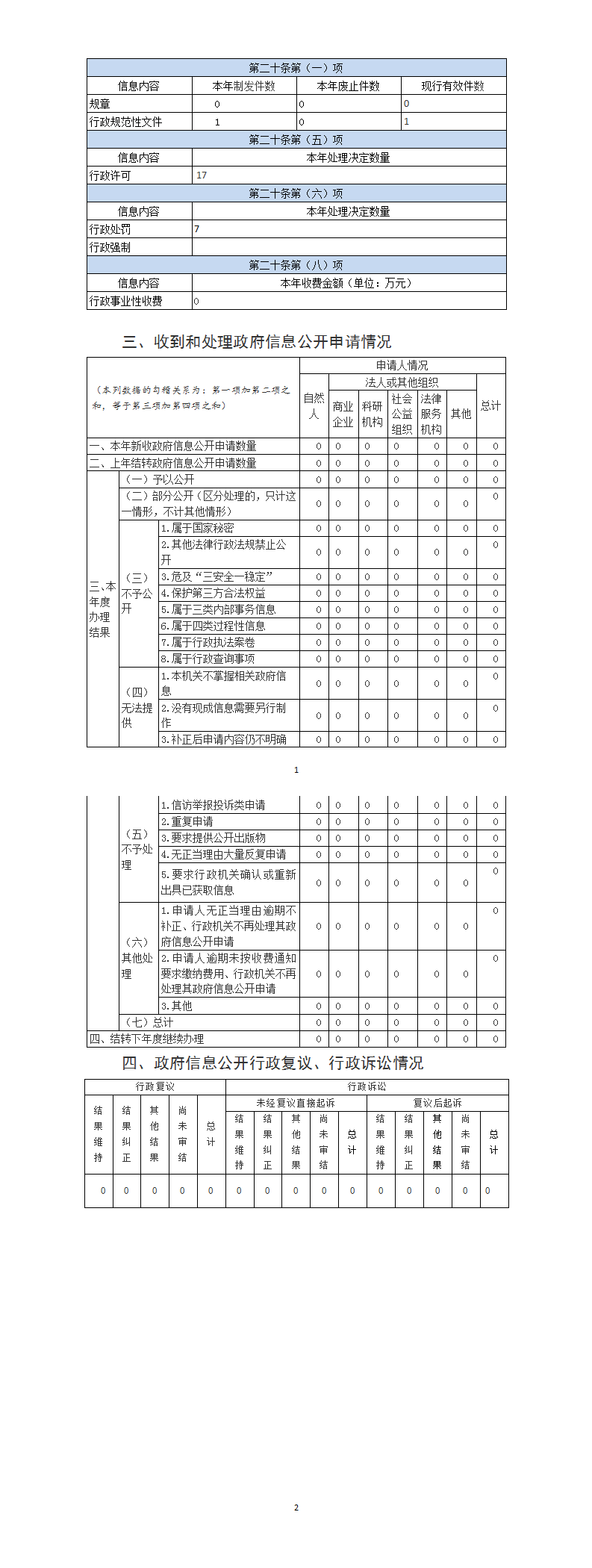(二)主動公開政府信息情況