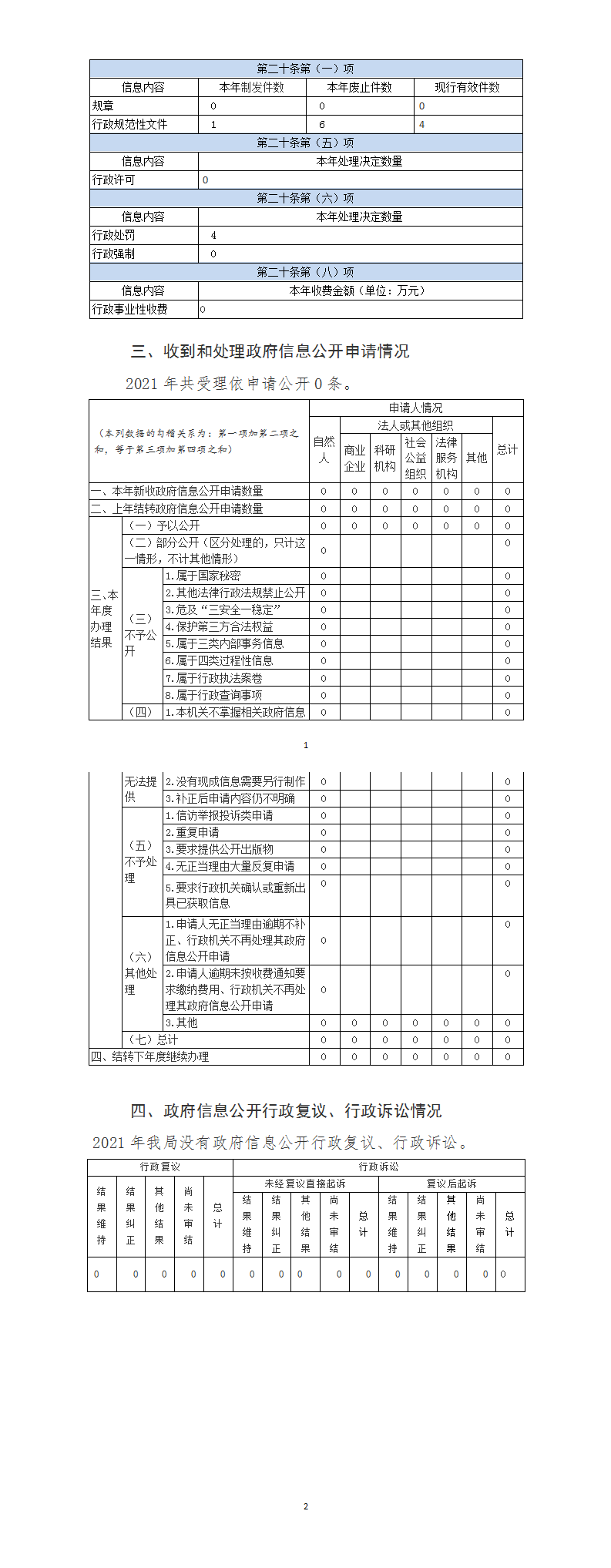 2021年,我局持續推進政府信息主動公開工作,明確責任清單,結合平臺規范化建設,不斷完善信息公開欄目,增強本級網站功能。全年,通過門戶網站公開發布各類信息804條,微信公眾號編發文章46篇。