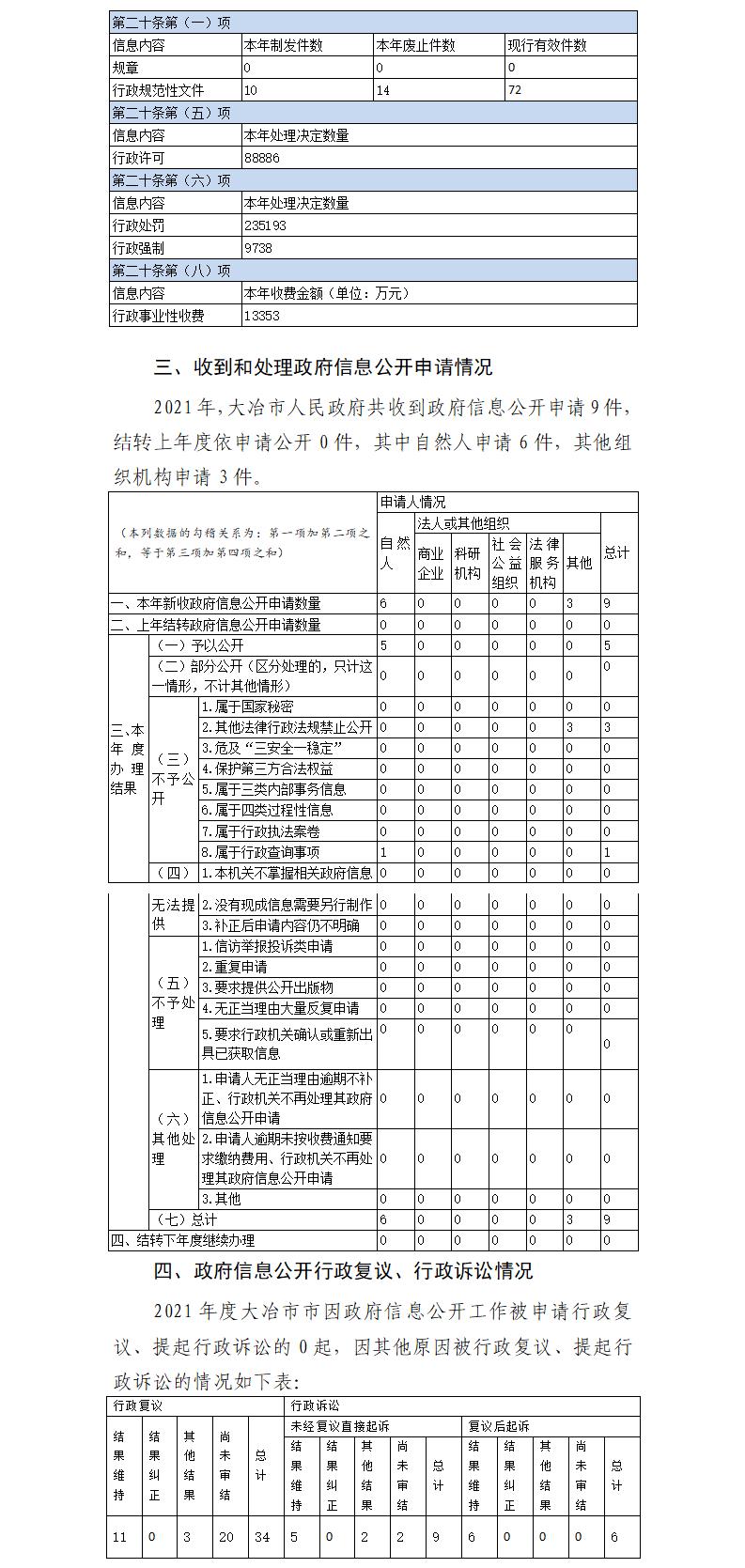 大冶市2021年政府信息公開工作年度報告