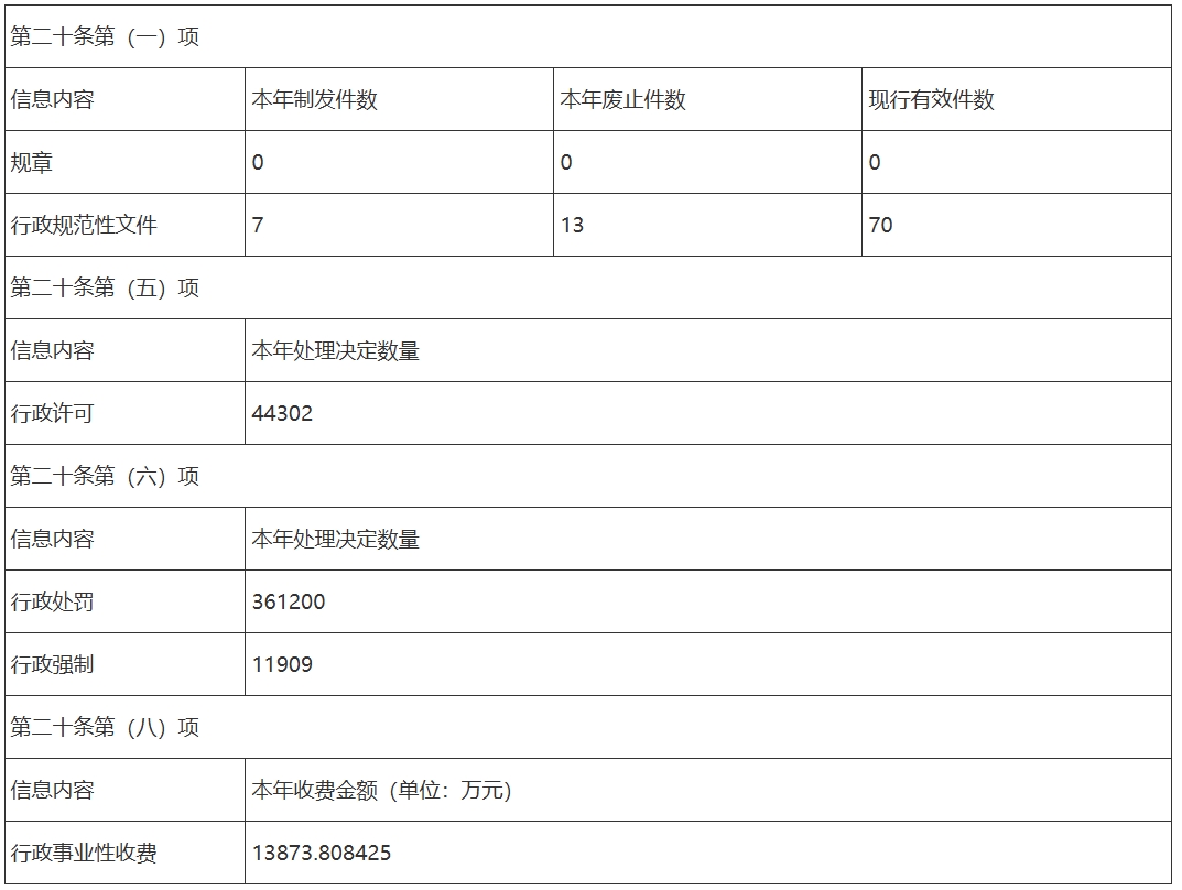 2025年,我市新增規范性文件7件,廢止規范性文件13件,現行有效性文件70件,本年度處理決定共計417411條,其中行政許可44302條、行政處罰361200條、行政強制11909條。