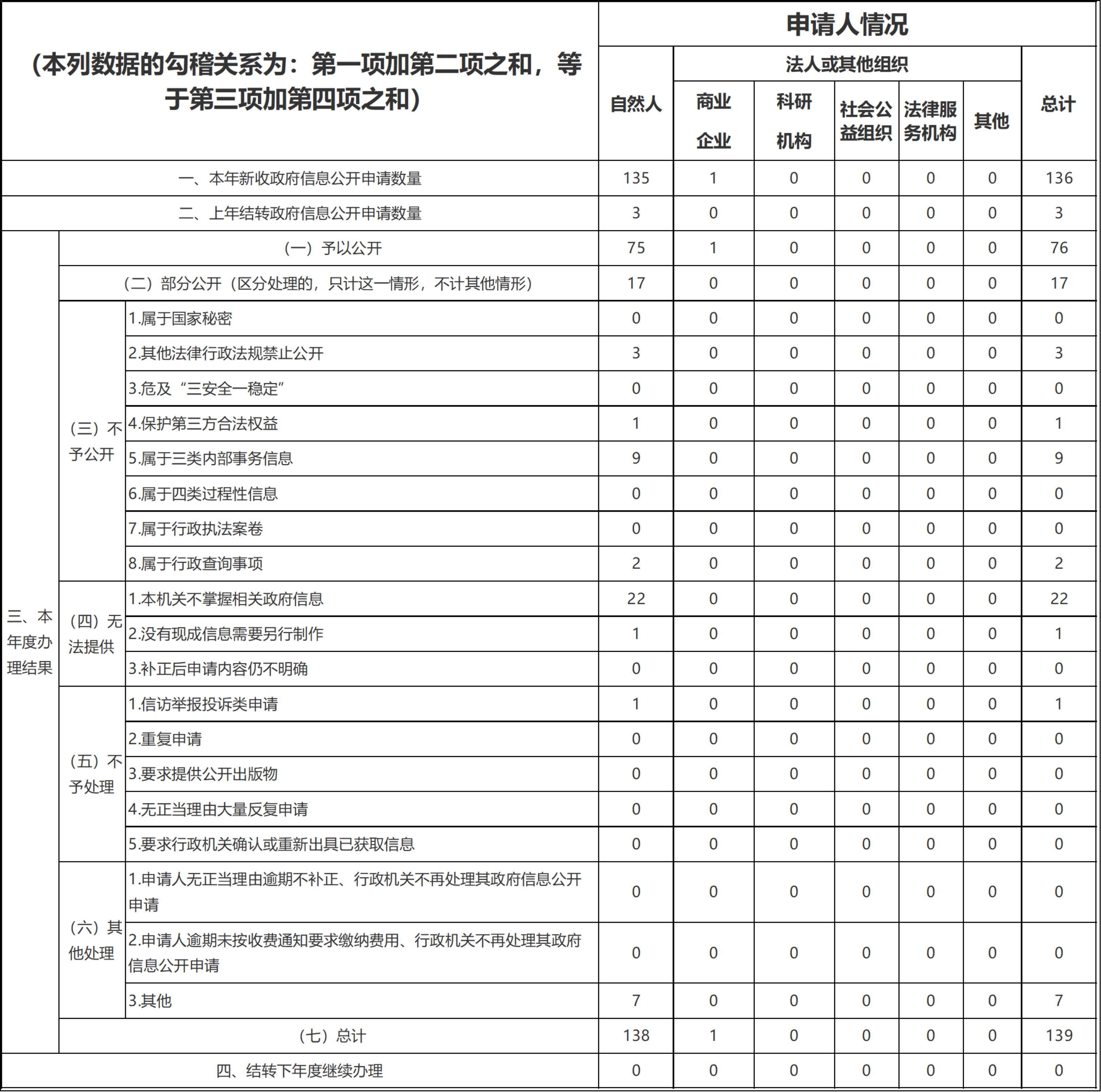 三、收到和處理政府信息公開申請情況