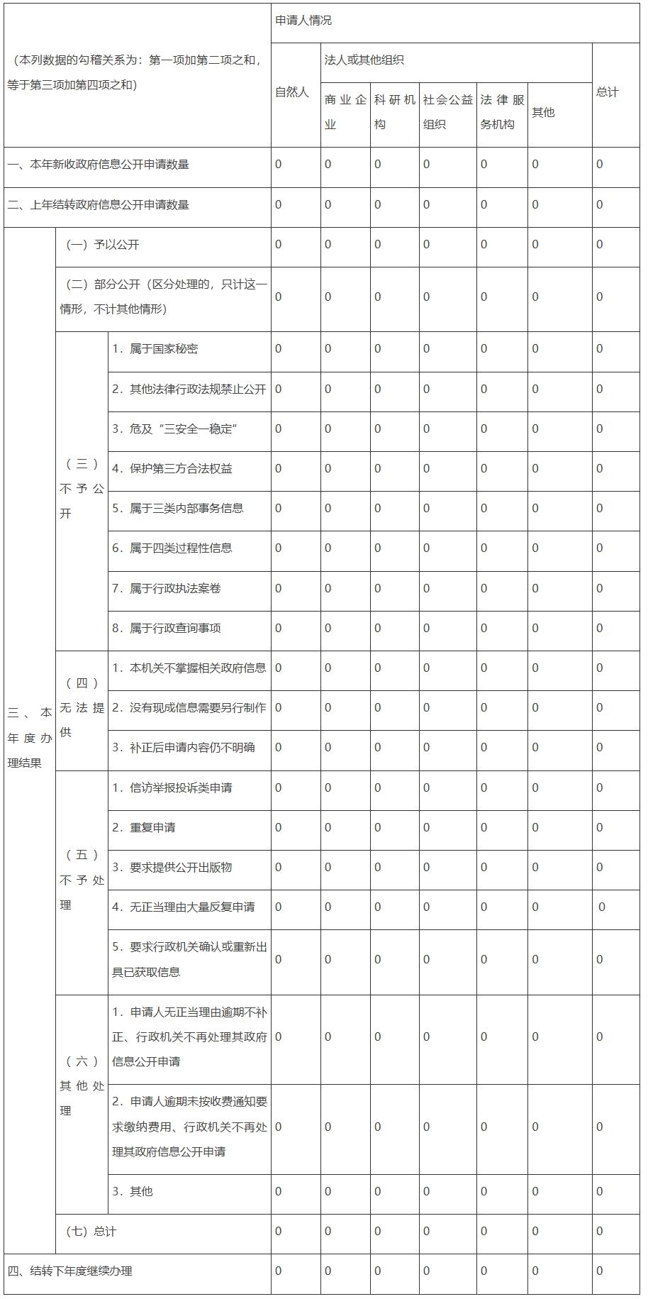 三、行政機關收到和處理政府信息公開申請情況