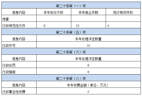 2024?年,黃石市司法局制發行政規范性文件0件,廢止或失效認定13件,移出1件,現行有效6件。全年作出行政許可處理決定10件,行政處罰0件,行政強制0件,收取行政事業性收費0萬元。