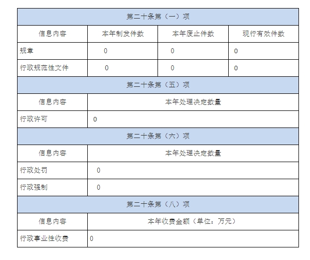 根據湖北省人民政府辦公廳《關于全面推行行政規范性文件合法性審核機制的實施意見》(鄂政辦發〔2019〕25號)明確:國有資產監督管理機構制定的履行出資人職責的文件不屬于行政規范性文件范疇。同時,市政府國資委屬于“未承擔行政許可事項或較少提供公共服務部門”,故行政規范性文件、行政許可、行政處罰、行政強制信息公開數量為0。