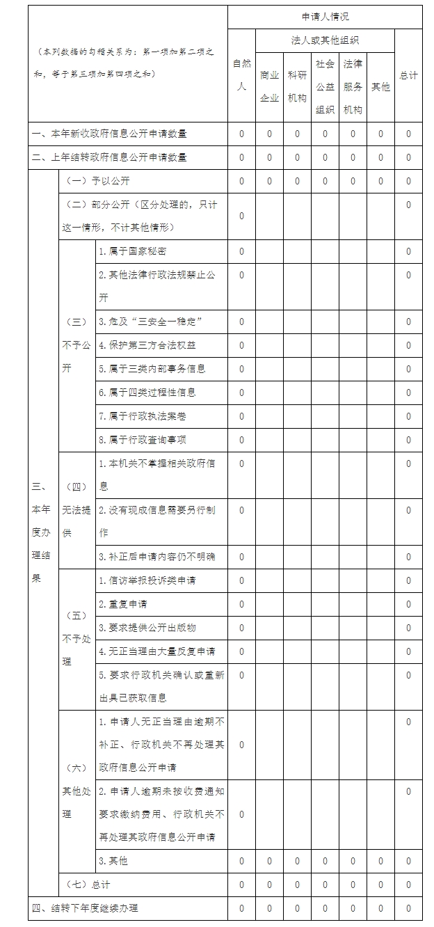 為深入貫徹落實《國務院辦公廳政府信息與政務公開辦公室關于政府信息公開工作年度報告有關事項的通知》有關規定和要求,現公布2024年黃石市政府國有資產監督管理委員會政府信息公開工作情況。本報告根據《中華人民共和國政府信息公開條例》(以下簡稱《條例》)規定編制,內容包括總體情況、主動公開政府信息情況、收到和處理政府信息公開申請情況、政府信息公開行政復議和行政訴訟情況、存在的主要問題及改進措施、其他需要報告的事項。本報告所列數據的統計期限自2024年1月1日起至2024年12月31日止。