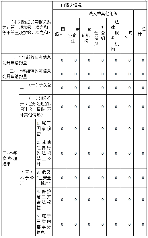 本年度報告依據《中華人民共和國政府信息公開條例》(以下簡稱《條例》)文件要求,本報告全文包括總體情況、主動公開政府信息情況、依申請公開政府信息情況、政府信息公開復議和訴訟情況、存在的主要問題及改進情況等。報告數據統計期限從2024年1月1日到12月31日止。