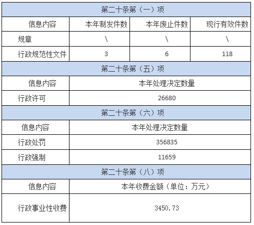 2024年,陽新縣新增規范性文件3件,廢止規范性文件6件,現行有效件數118件。本年度處理行政許可26680條、行政處罰356835條、行政強制11659條。