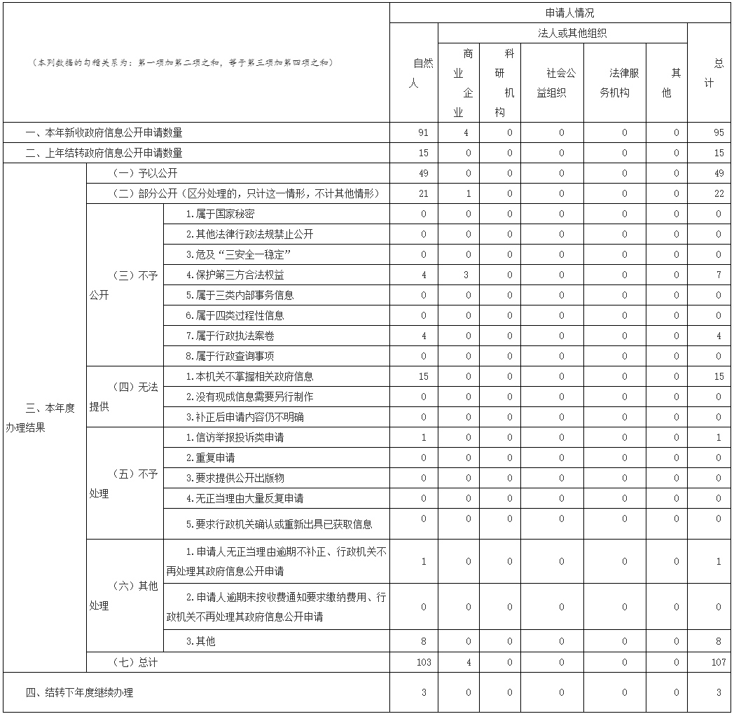 2024年全縣共收到依申請公開95件,上年結轉15件,結轉下年度繼續辦理3件,全部按期答復。