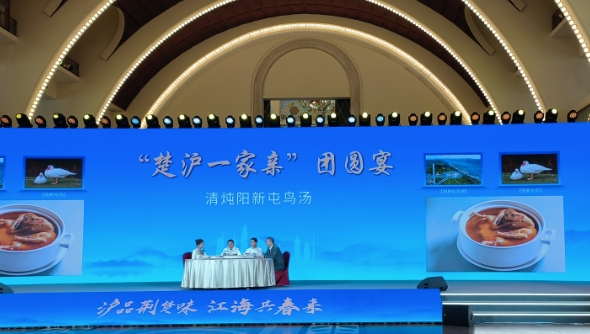 此次活動(dòng)包括圓桌論壇、奧運(yùn)冠軍推介、推薦官授牌儀式、團(tuán)圓宴、項(xiàng)目簽約等環(huán)節(jié)。活動(dòng)中,上海和湖北的大廚共同奉上了一桌“荊楚地標(biāo)海派團(tuán)圓宴”,清燉陽(yáng)新屯鳥(niǎo)湯、冰鎮(zhèn)話梅小龍蝦、響油仙桃黃鱔等滬派做法的楚菜,體現(xiàn)了鄂滬兩地高度契合、雙向奔赴的深厚情誼。