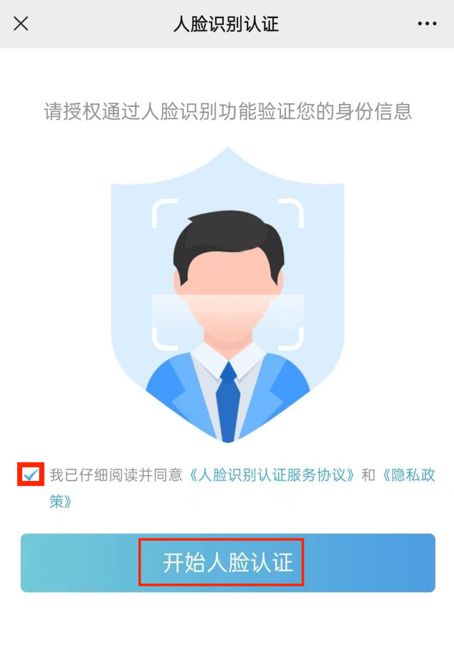 勾選“我已仔細(xì)閱讀并同意《人臉識(shí)別認(rèn)證服務(wù)協(xié)議》和《隱私政策》”,并點(diǎn)擊“開(kāi)始人臉認(rèn)證”。